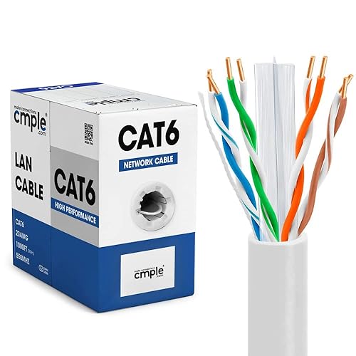 Cat6 Ethernet Cable 1000 Ft 550 Mhz Bulk Ethernet Lan Network Cable Unshielded Twisted Pair Highest-Quality And Inexpensive: Thatas A Great Combination For Ethernet Cabling Our Cable Provides Superior Transmission Performance And Low Signal Losses It Supports Up To 550 Mhz And Is Suitable For Fast Ethernet, Gigabit Ethernet, And 10-Gigabit Ethernet It Meets The Cat6 Standard And Is Suitable For Use With 1001000Base-T Networks This Product Has High-End Specs For About Half The Price Of Most 1000 Foot Cat6 Cable That Youall Find Anywhere Else Features: Cat6 Bulk Cable - Connects Between Ethernet And Network Device 23Awg 4 Pair Solid Twisted Wires Cca - Copper Clad Aluminum Supports 10 Gigabits Data Transfer Speeds Ideal For Use With 100-1000Base-T Networks 4 Twisted Pairs Of Stranded Copper Wires Prevent Crosstalk Comes In An Easy Pull Box With Big Mouth Opening For Easy Pull-Out Color: White Length: 1000 Feet (305M) 100% Satisfaction Guarantee Installing The Cmple Bulk Ethernet Cable Is A Snap, As The 1000 Feet Of Cable Comes Packed In A Convenient Easy-Pull Box That Allows You To Feed The Cabling Out Easily And With Precision, Since The Entire Length Of The Cable Is Marked By The Foot It Also Makes Things Simple If You Want To Make Your Own Cat6 Patch Cords All You Have To Do Is Measure Out The Exact Length You Need And Attach Rj-45 Connectors Designed To Distribute Data, Voice And Video And More