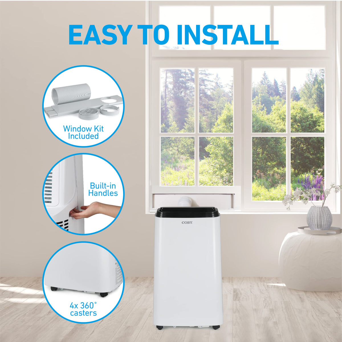 Enjoy This Coby 12,000 Btu (Ashrae 128) 8,150 Btu (Sacc/Cec) Air Conditioner Portable During All Seasons Of The Year So You Can Stay Comfortable And Cool. Our Air Conditioner Portable For Room (16.7'' X 14.7'' X 28.9'') Has 4 Functionalities: Fan, Dehumidifier, Heater, And Ac, Totaling A Powerful Combo. This Personal Cooler And Air Conditioner Fan Covers Up To 550 Sq. Ft. And Comes With An Easy-To-Navigate Remote Control For Optimal Convenience. Our 12000 Btu Portable Ac Unit Cools And Heats A Room Efficiently, Is Compact And Highly Mobile Thanks To Casters On The Bottom And Handles On The Side. Additionally, Your New Ac Unit Portable And Small Air Conditioner Comes With A Removable Washable Filter For Hassle-Free Cleaning. When It Comes To Ac Units For Rooms, This Personal Air Conditioner And 12000 Btu Portable Air Conditioner Has Impressive Functionalities, Such As A 24-Hour Timer, Double Motor, Auto Water Evaporation, 3 Cooling + 3 Fan Speeds, As Well As Electronic Controls With An Intuitive Led Display. Our Room Air Conditioner Also Comes With A Complete Installation Kit And Internal Auto Air Swing. You Can'T Go Wrong With A Portable Cooler And Dehumidifier Fan Like This One, Especially On Sweltering Summer Days When Cool Air Is Critical. Our Coby Indoor Air Conditioner (62.5 Lbs.) Takes R-32 Refrigerant To Optimize Energy Efficiency And Reinforced Packaging Is Included For Total Customer Satisfaction. When It Comes To Room Air Conditioners And Fans That Blow Cold Air, Our Coby Indoor Ac Unit With Heater And 12000 Btu Portable Air Conditioner Is Your Top Solution.