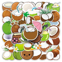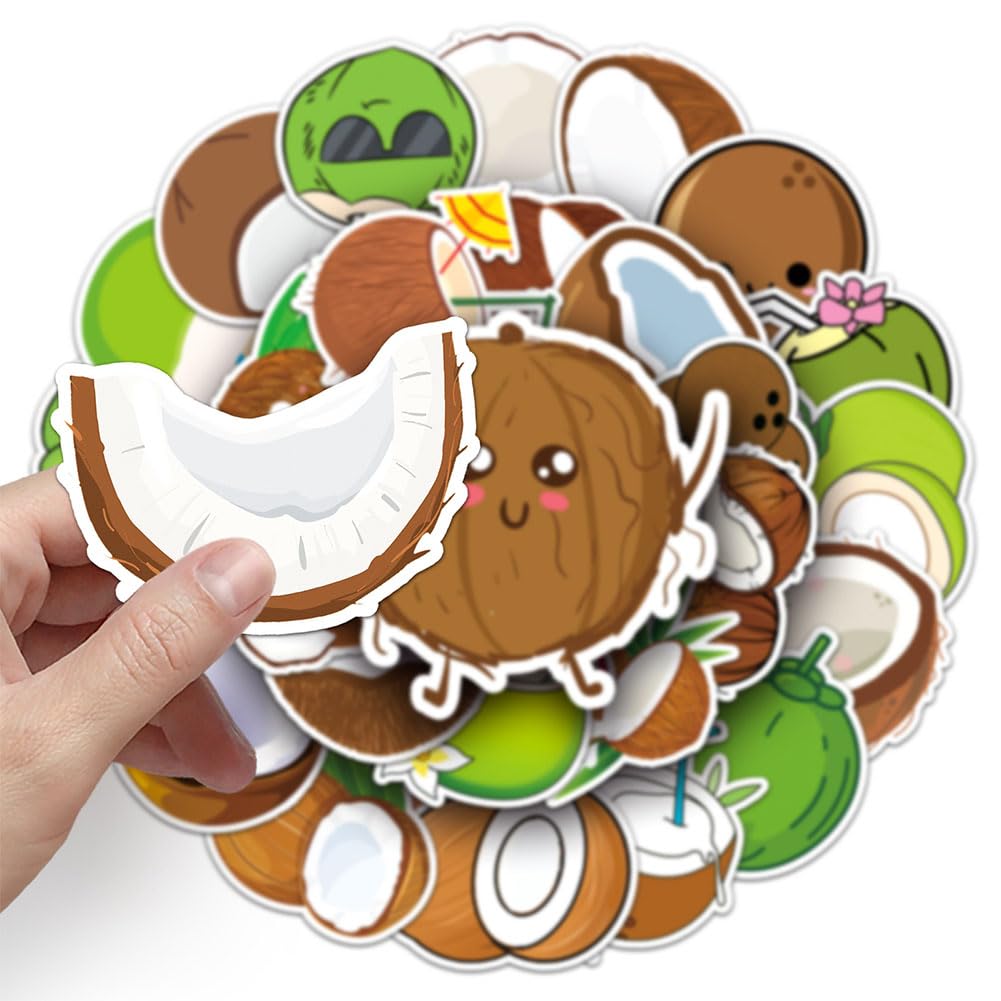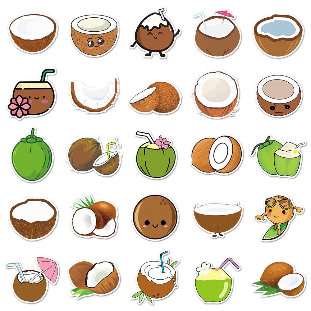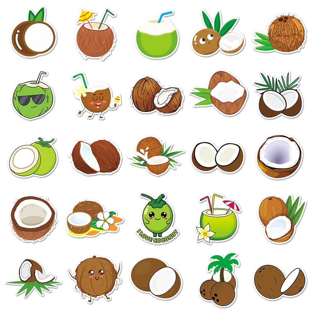 Coconut Stickers |50Pcs Coconut Waterproof Vinyl Decals For Water Bottles Laptop Luggage Cup Computer Mobile Phone Skateboard Gu