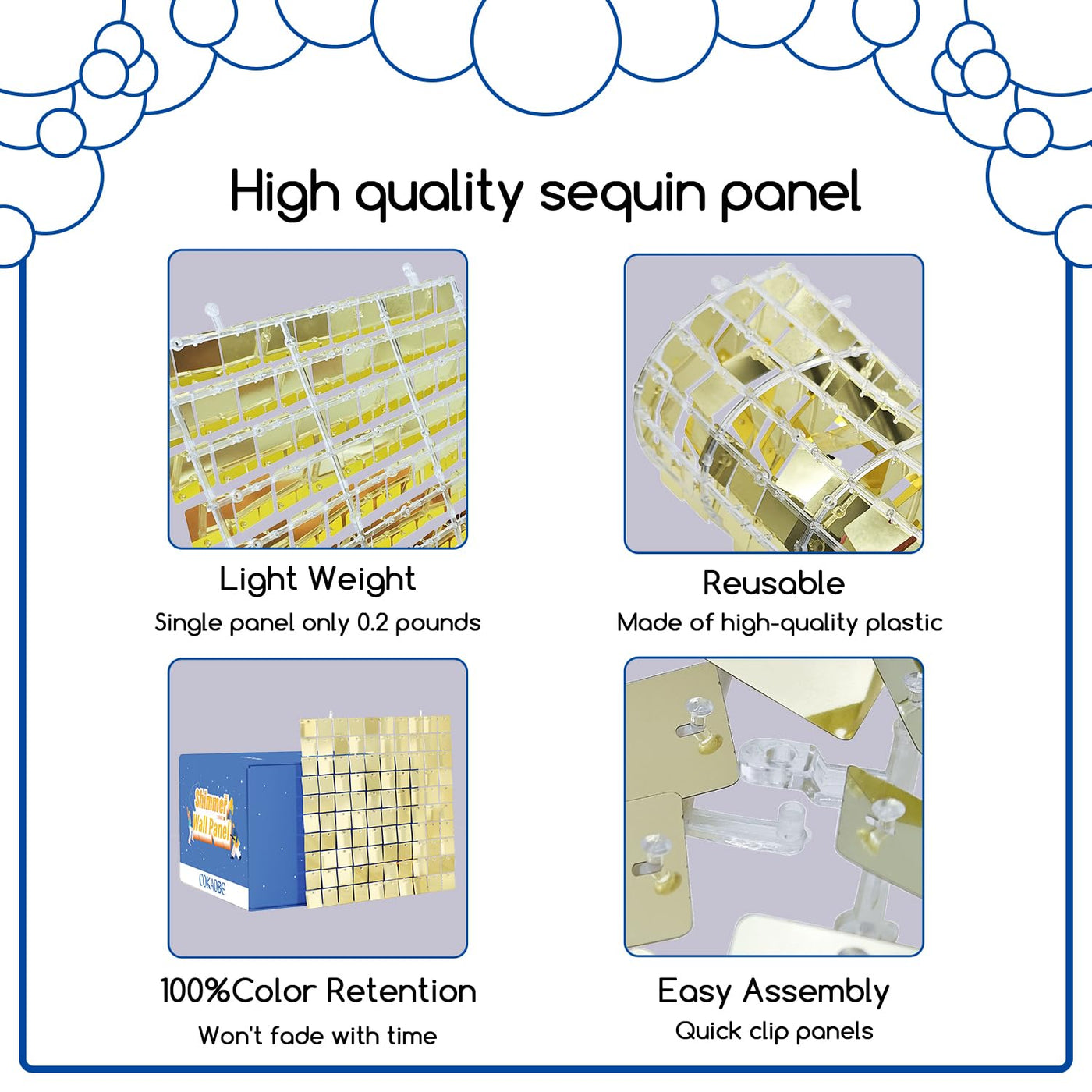 Q: Are the sequin panels durable and reusable?A: Yes, the shimmer sequin wall panels are made from high-quality PVC material, making them durable and resistant to breaking. They can be used multiple times for different events, allowing you to create unique setups each time.