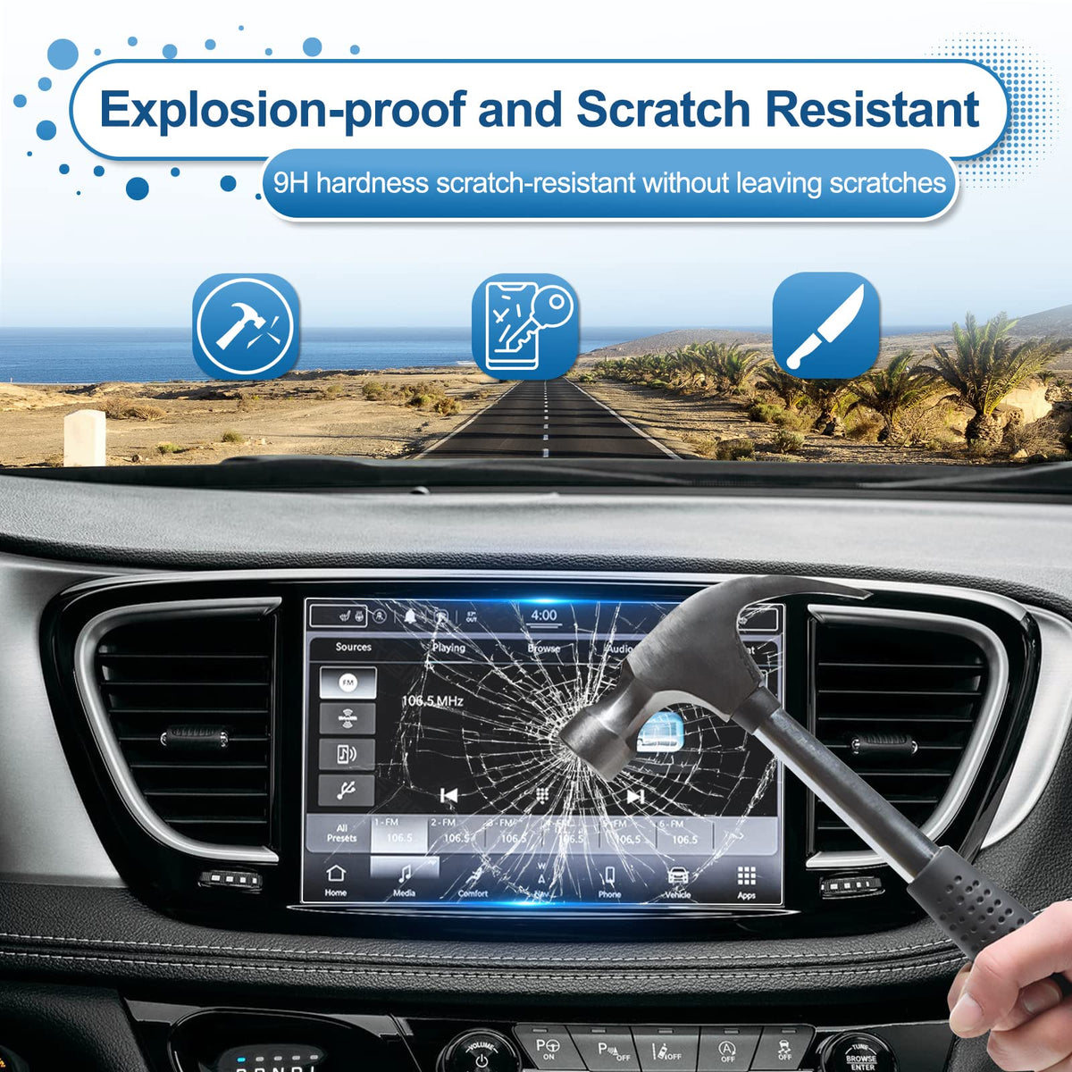 Compatible For Chrysler Pacifica 10.1-Inch Navigation 2024 Pacifica (Touring/Touring L/Pinnacle/Limited) 2023 Pacifica (Touring/Touring L/Pinnacle/Limited) 2022 Pacifica (Touring/Touring L/Pinnacle/Limited) 2021 Pacifica (Touring/Touring L/Pinnacle/Limited) Compatible For Chrysler Pacifica Hybrid 10.1-Inch Navigation 2024 Pacifica (Select/Pinnacle) 2023 Pacifica (Touring L/Pinnacle/Limited) 2022 Pacifica (Touring L/Pinnacle/Limited) 2021 Pacifica (Touring/Touring L/Pinnacle/Limited) Why Choose Coleya'S 2021 2022 2023 2024 Pacifica Tempered Glass? 1.Coleya Is A Professional Tempered Glass Company, With High-Quality Raw Materials, The Latest Technology Applications, Data Collected From Various Aspects, And Presenting High-Quality Products 2.Coleya Adopts High-Quality Tempered Glass, 2.5D Arc Edge Design, 9H Super-Hard Protection, And The Latest Thermal Induction Nanotechnology To Meet All Your Needs For Tempered Film! 3.Coleya Service, Considering The Needs Of Customers And Starting From The Actual Situation Of Customers, Can Provide Customers With Return And Exchange Services, So That Your Shopping Has No Worries! Installation Steps: 1. Compare The Protector To Your Navigation Screen. 2. Clean The Screen: Open The Kit And Clean It With A Wet Towel First, Then With A Microfiber Cloth. 3. Use Dust Removal Stickers To Remove Surface Dust And Ensure The Screen Is Completely Clean. 4. Use The Positioning Labels To Align The Protector On The Screen. Make Sure The Protector Is In The Correct Position. 5. Tear Off The Back Of The Protective Film Clockwise, Sweep Gently From The Center Of The Screen, And Wait For The Protective Film To Automatically Absorb. 6. Clean The Screen With A Microfiber Cloth, Then The Installation Is Complete. Package Included: 1 X High-Quality Tempered Glass 1 X Installation&After-Sales Manual 1 X Installation Auxiliary Tools (1*Wet Wipe, 1*Microfiber Cleaning Cloth, 1*Dust Removal Sticker, 2*Positioning Labels)