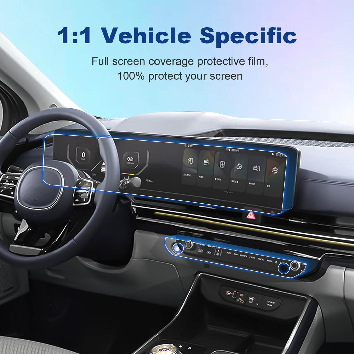 Compatible For Kia Carnival 12.3-In. Dual Panoramic Displays & Ac Display For 2025 Carnival (Lx/Lxs/Ex/Sx/Sx Prestige) Why Choose Coleya'S 2025 Carnival Screen Protector? 1.Coleya Is A Professional Screen Protector Company, With High-Quality Raw Materials, The Latest Technology Applications, Data Collected From Various Aspects, And Presenting High-Quality Products 2.Coleya Protective Film Is Made Of High Quality Materials, Only 0.125Mm Thickness, After Use Is Still The Touch Of The Original Screen, Moderate 4H Hardness, So That It Is The Maximum Balance Between Protection And Sensitivity 3.Coleya Service, Considering The Needs Of Customers And Starting From The Actual Situation Of Customers, Can Provide Customers With Return And Exchange Services, So That Your Shopping Has No Worries! Installation Steps: 1. Compare The Screen Protector To Your Display Screen. 2. Clean The Screen: Open The Kit And Clean It With A Wet Towel First, Then With A Microfiber Cloth. 3. Use Dust Removal Stickers To Remove Surface Dust And Ensure The Screen Is Completely Clean. 4. Use The Positioning Labels To Align The Protector On The Screen. Make Sure The Protector Is In The Correct Position. 5. Tear Off The Back Of The Yellow Label Protective Film Clockwise, Use The Card In One Direction To Remove The Bubbles; Tear Off The Green Label Protective Film 6. Clean The Screen With A Microfiber Cloth, Then The Installation Is Complete. Package Included: 4 X High-Quality Screen Protector 4 X Installation Auxiliary Tools (1*Wet Wipe, 1*Microfiber Cleaning Cloth, 1*Dust Removal Sticker, 2*Positioning Labels) 1 X Installation&After-Sales Manual