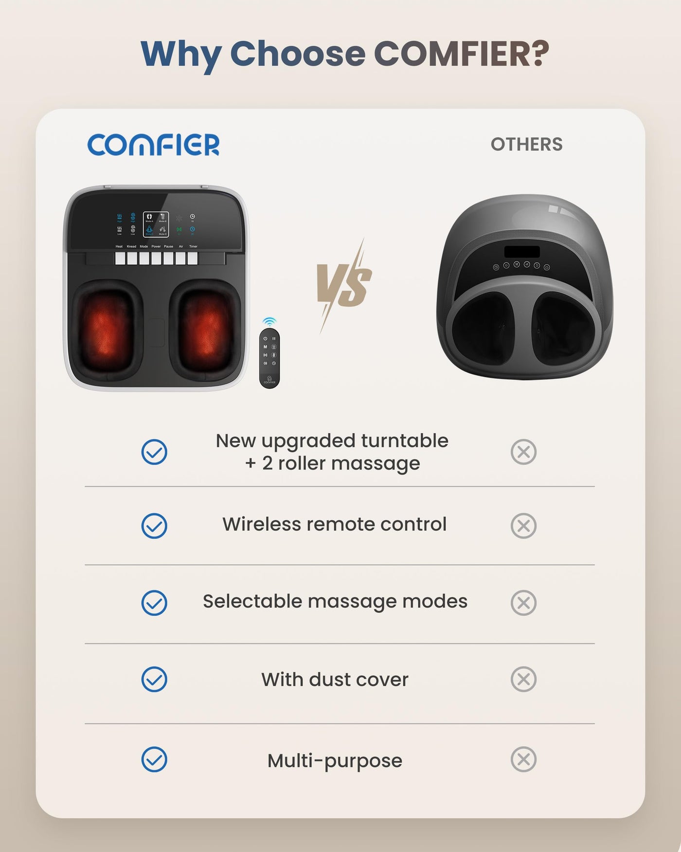 Comfier Foot Massager With Heat, Shiatsu Foot Massager Machine For Neuropathy Plantar Fasciitis, Squeeze & Rolling Foot Massage,