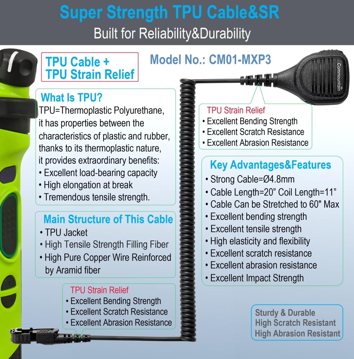 Commountain Speaker Mic With Reinforced Cable For Motorola Radios Xpr 3500E, Xpr 3300E, Xpr 3500, Xpr 3300, Xpr3500E, Xpr3300E,