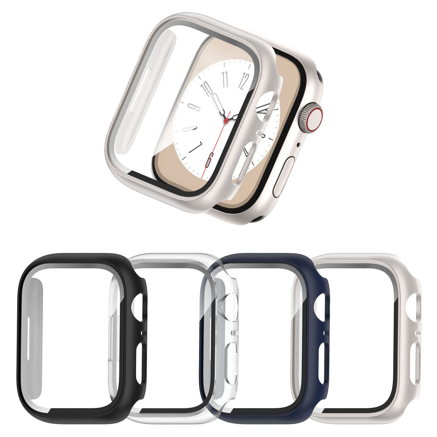 [4 Pack] Commuter For Apple Watch 8 & Apple Watch 7 Screen Protector 41Mm, Hard Pc Ultra-Thin Protective Face Cover Built-In Tempered Glass Film For Apple Watch 8/7 41Mm, Black/Clear/Blue/Starlightquestion &Amp; Answerwhat Are The Specific Installation Steps?First, Clean Your Apple Watch Screen With Wet And Dry Wipes. Second, Peel Off The Protective Film On The Surface Of The Product And Try Not To Touch The Protector. Third, Install The Case From The Crown Part, Press The Frame And Install It Completely.Does It Cover A Lot Of The Screen For The Apple Watch Case?These Products Provide A Full Coverage Protective Case For Your Apple Watch Case, The Case With A Tempered Glass Screen Protector Is Designed To Offer External Surface Protection To Your Watch Without Compromising Usability.Is This Product Waterproof? Can I Wear It While I Swim?Our Products Can Be Waterproof For Daily Use. When You Swim, We Recommend Removing The Apple Watch Case. If You Forget To Remove It While Swimming, You Can Wipe The Product With A Rag Or Wet Towel.Does This Product Work Properly While Charging?Yes, When Your Apple Watch Is Charged, This Product Will Not Interfere With The Charging Of Your Watch.