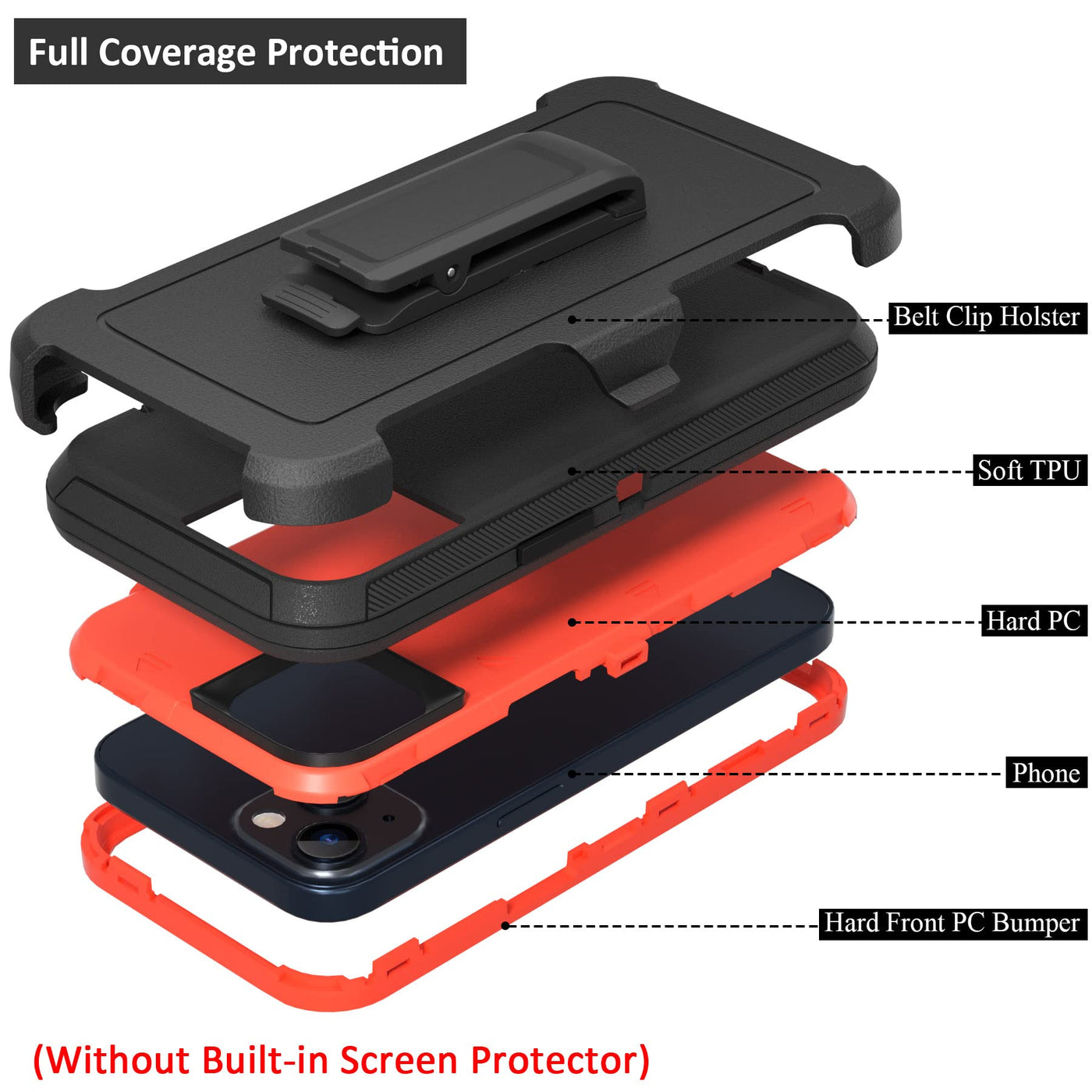 Heavy Duty Rugged Shockproof Case With Swivel Belt Clip Holster - Designed For Iphone 13 61 Inch Faq About Our Products Q1: Compatible Phone Model A1: The Case Is Perfectly Compatible With Iphone 61 Inch Phone Precise Access To All Ports And Surfaces, 100% Tailored To Your Device Q2: Does The Phone Have Screen Protector A2: Of Course Yes, We Will Unconditionally Present 2 Pcs Screen Protectors, Thank You For Trusting Tenco And Our Products Q3: Does It Support Wireless Charging With The Case On A3: Yes, Our Case Supports Wireless Charge While Ensuring The Military Grade Full Coverage Protectionplease Remove The Belt Clip Holster First Before Doing Wireless Charging Key Features: 360-Degree Rotatable Belt Clip Attach The Clip Holster To Belt Or Bag To Reduce The Bulk In Your Pocket, Enjoy Your Life In Comfort And Convenience While Outdoors And Traveling 360-Degree Swivel Belt Clip Kickstand Supports Hands-Free Viewing Full Coverage Raised Frame Raised Frame And Corners Provide Good Protection Against Falling, Which Keep The Screen And Camera Safe Rugged Full Body Protection Iphone 13 61 Inch Rugged Case Combined With Soft Tpu Case And Hard Pc Shell Cover, Provide Full Body Protection Precise Ports The Precise Hole Of Camera Lens, Speaker, Microphone, Headphone Jack And Charging Hole Protective Cover, Which Allows You To Access All Ports And Interfaces Without Disassembling The Phone Frequently Product Contents: 2 X Free Iphone 13 61 Inch Screen Protectors 1 X Iphone 13 61 Inch Phone Cover Case 1 X Iphone 13 61 Inch Belt Clip Holster We Will Give A Fast Answer If You Have Any Question, And We Spare No Efforts In Endeavoring To Be Of Service To You