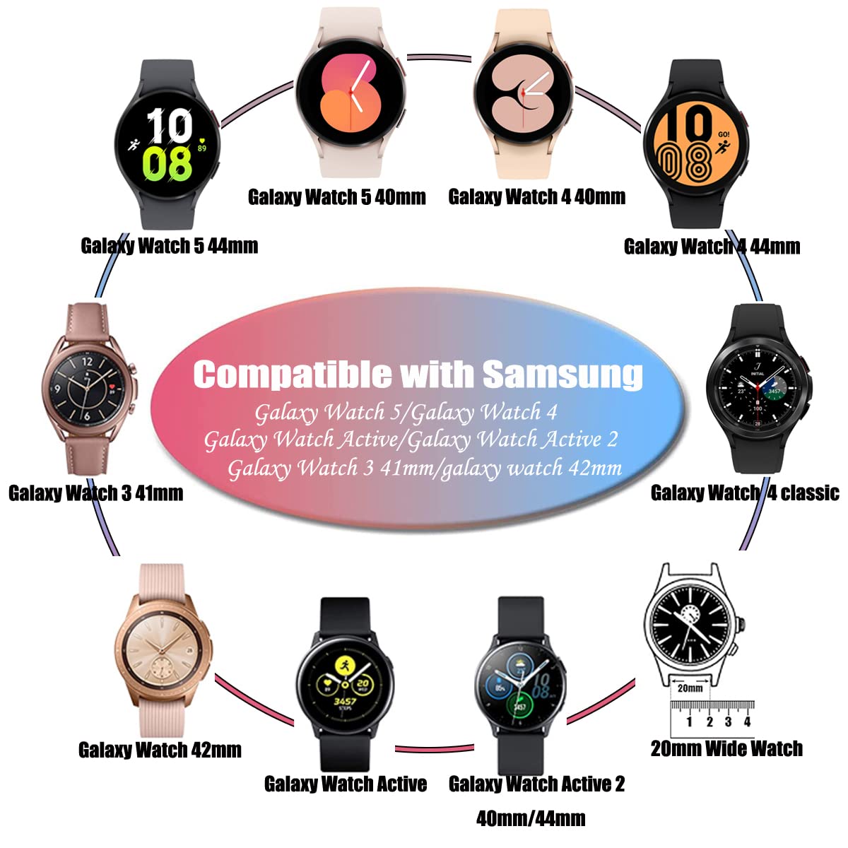 Note:20Mm Leather Band Replacement For Samsung Galaxy Watch 5 40Mm 44Mm Galaxy Watch 4 Classic 42Mm 46Mm Galaxy Watch Active 40Mm Smart Watch Band Compatibility: Special Designed For Band Your Samsung Gear Sport Smart Watch Galaxy Watch 42Mm Rose Gold Garmin Vivoactive 3 Gear Sportgear S2 Classicticwatch 2 Ticwatch E Smart Watch, This Band For Gear S2 Classic Features A Combination Of Functionality And Style Material :The Band Is Made Of Top Genuine Leather Which Provides A Comfortable, Anti-Slip And Sweat-Absorbent Fit Making Your Samsung Galaxy Watch Active 40Mm Look Much Stylish And Fit Soft From Work To Casual Life Color Choice :Delighted Varied Color Fits Your Mood And Outfits In Daily Life Not Only Sport Watch Bands But Also Fashionable Accessories Size:Fits 50 - 75 Inch(127Mm-190Mm) Wrist Wrist Package Included:1*Leather Band For Galaxy Watch Active 40Mm