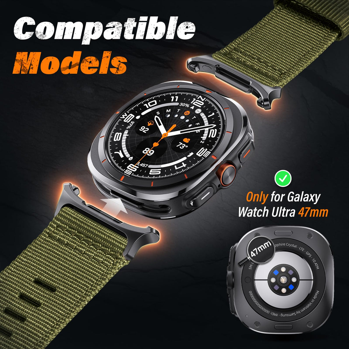 Compatible With Samsung Galaxy Watch Ultra Bands 47Mm, Rugged Nylon Band For Galaxy Watch Ultra 47Mm(2025/2024), Adjustable Smar
