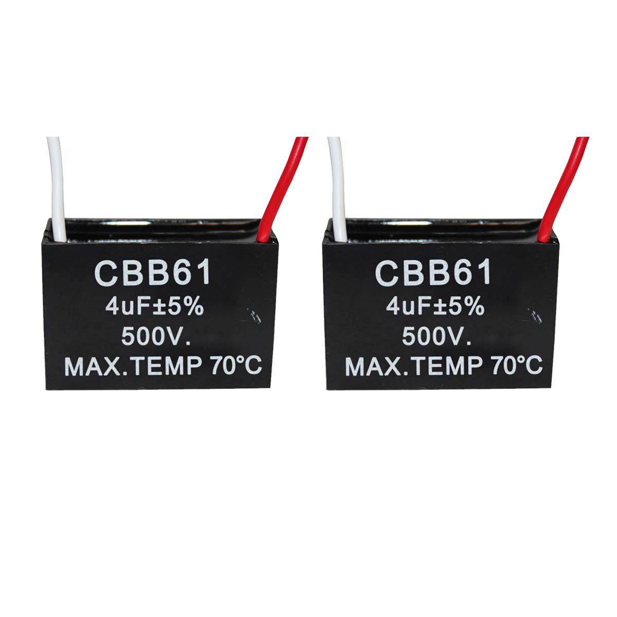 Compstudio 2Pcs 4Uf 500V Cbb61 Ceiling Fan Capacitor 2 Wire 50/60Hz