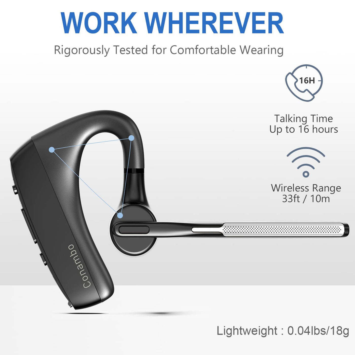 Conambo Bluetooth Headset V5.1, 16 Hrs Hd Talktime Cvc8.0 Dual Mic Noise Cancelling Hands Free Bluetooth Earpiece For Cell Phone Iphone Android Driving Business Office