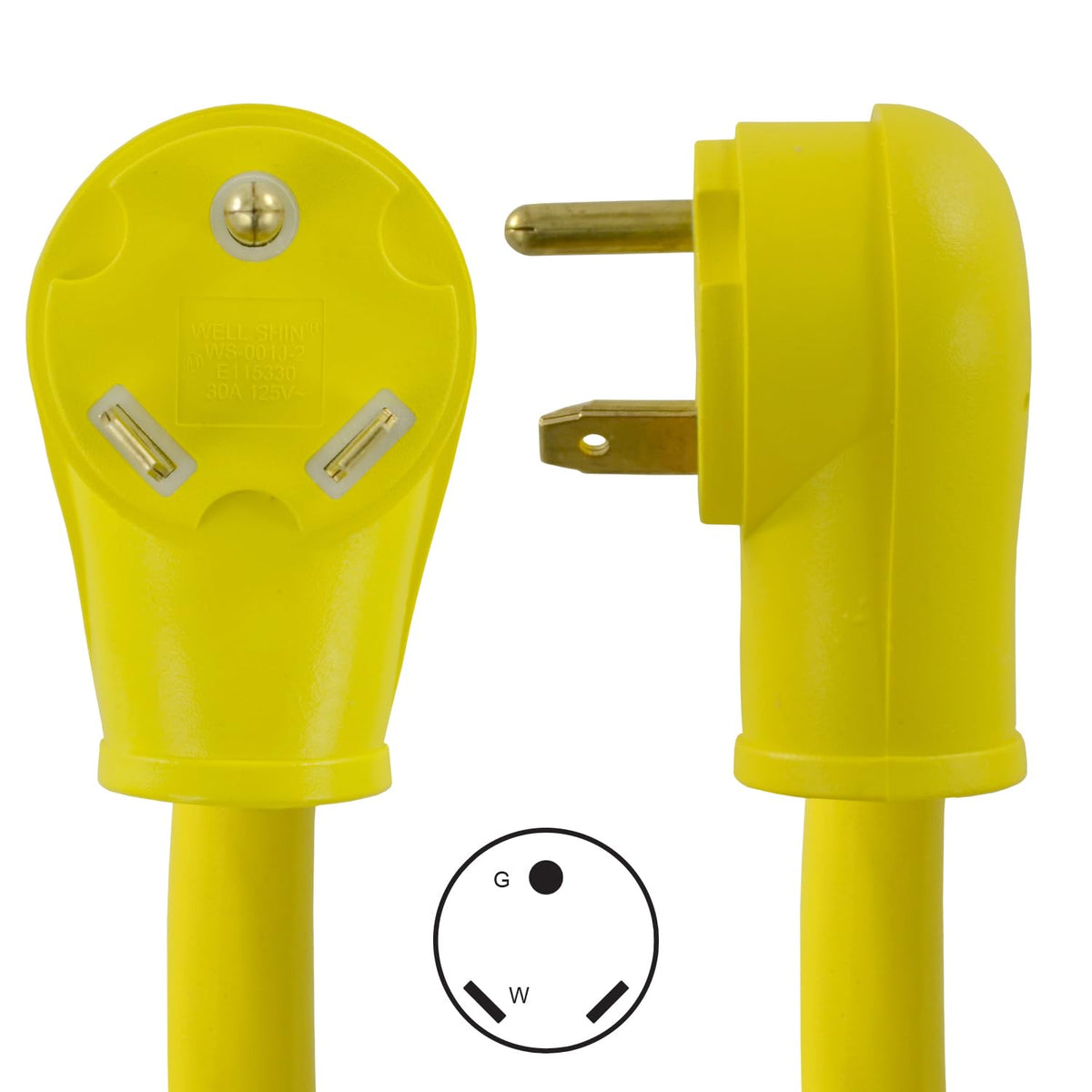 Rv Camp Power Pigtail Adapter Cord, 30A 125V Rv Plug To 15/20A 125V Connector, Clear Nema Tt-30P To Nema 5-15/20R Cable: 1.5Ft Stw 10/3 Approval: Plug, Connector, And Stw: Ul, C-Ul