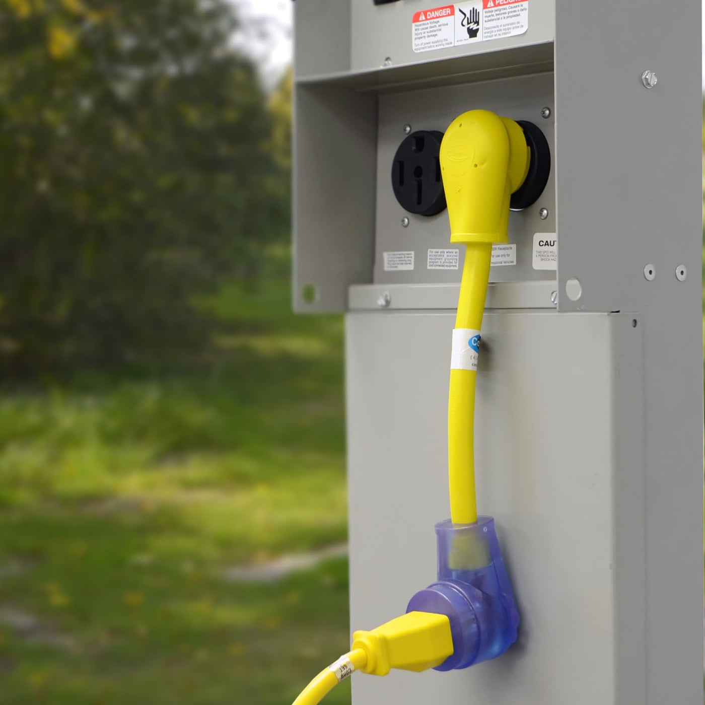 Q: Can I use the Conntek 14340 adapter for outdoor applications?A: Yes, the Conntek 14340 adapter is built with STW 10/3 cable which is suitable for outdoor use, making it ideal for RV camping and other outdoor power needs.