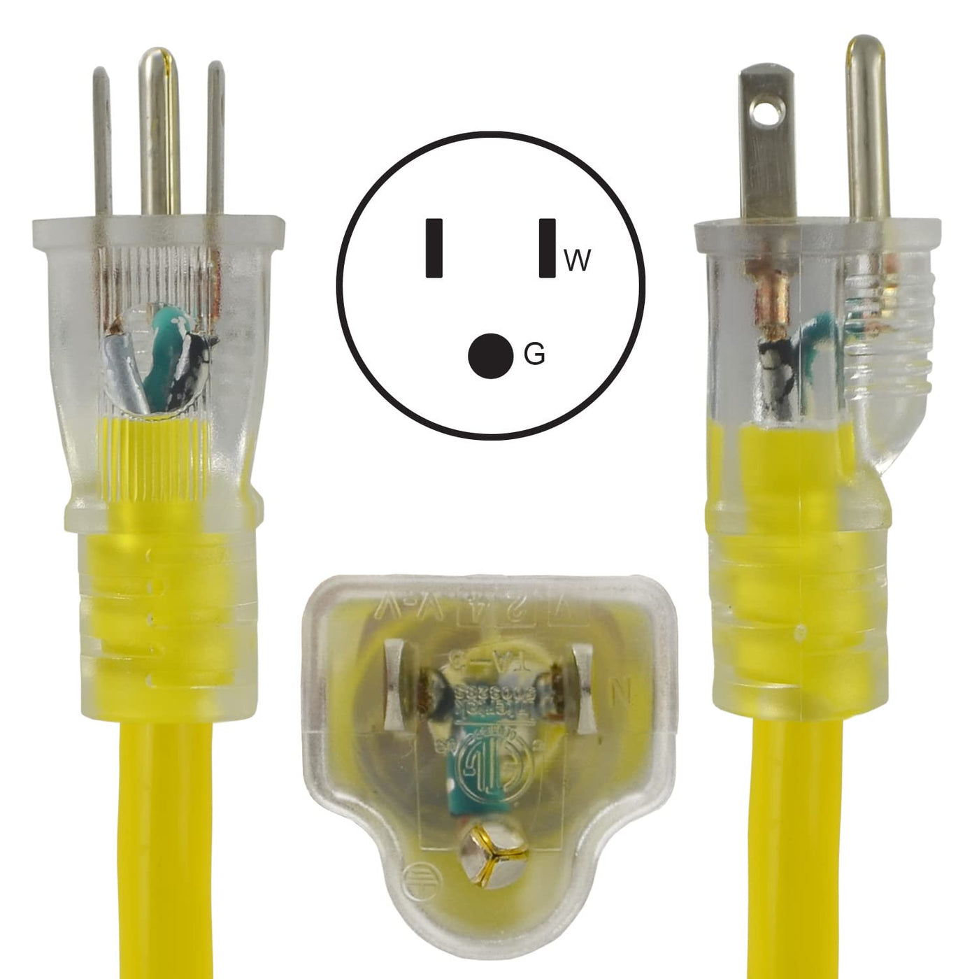 Outdoor Extension Cord Supply End - Nema 5-15P U.S 3 Prong Plug, Equipment End - Nema 5-15R U.S 3 Prong Connector Clear Blue, With Neon Light Approval: Plug, Connector And 25Ft Sjtw 12/3: Ul, C-Ul Limited One Year Warranty.