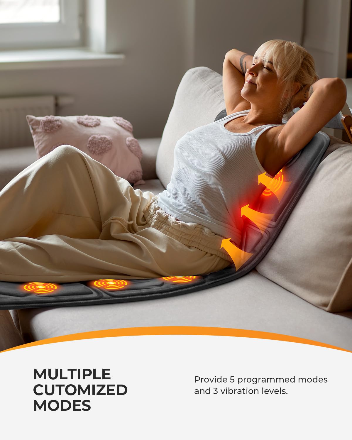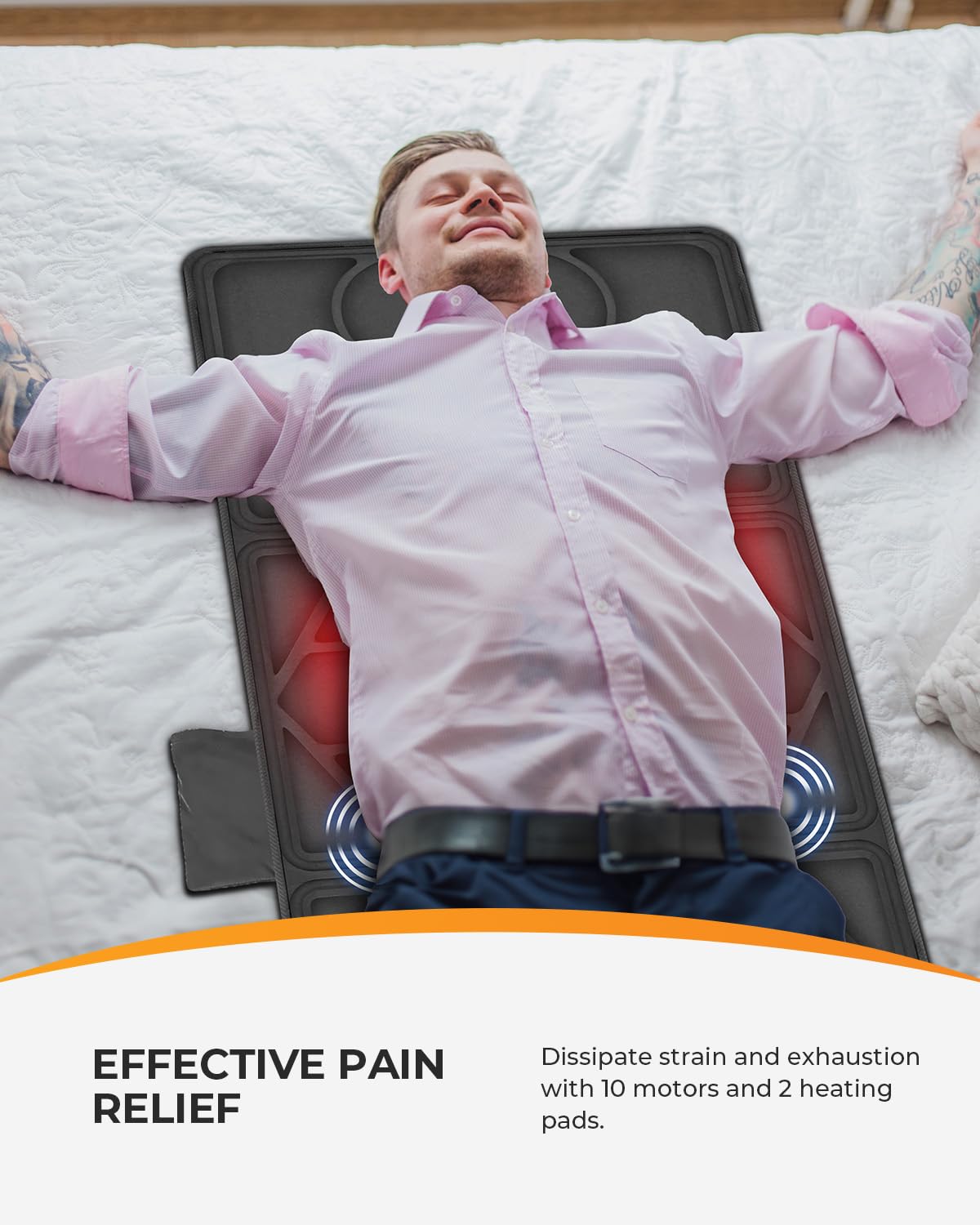 Coococo Massage Mat With Heat, Massage Pad With 10 Vibration Motors, Full Body Massager For Neck And Back, Bed Massager For Women Man