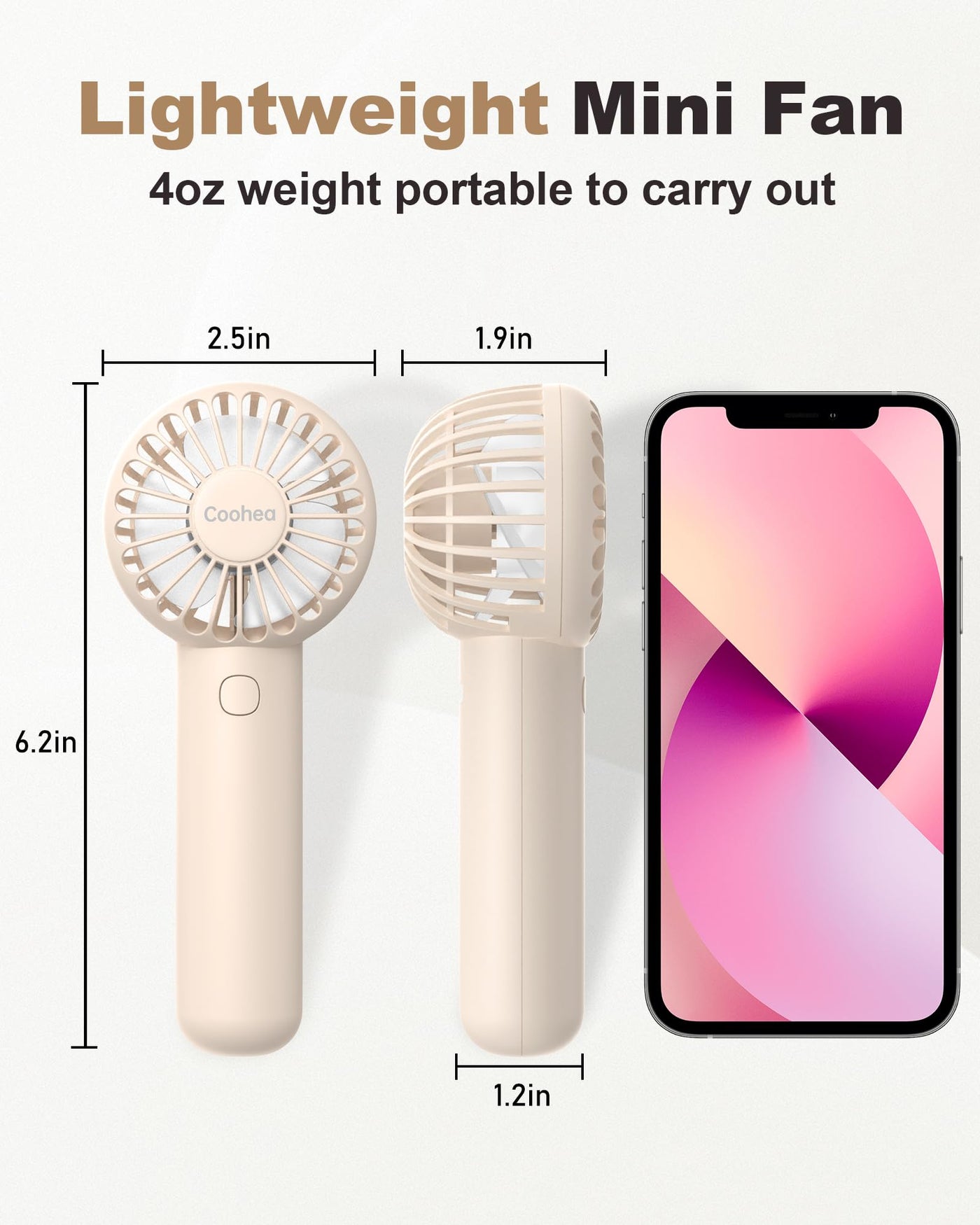 Coohea Handheld Fan Mini Portable Fan Rechargeable Battery Eyelash Fan Usb Powered 3 Speeds Powerful Makeup Fan, Small Fan With