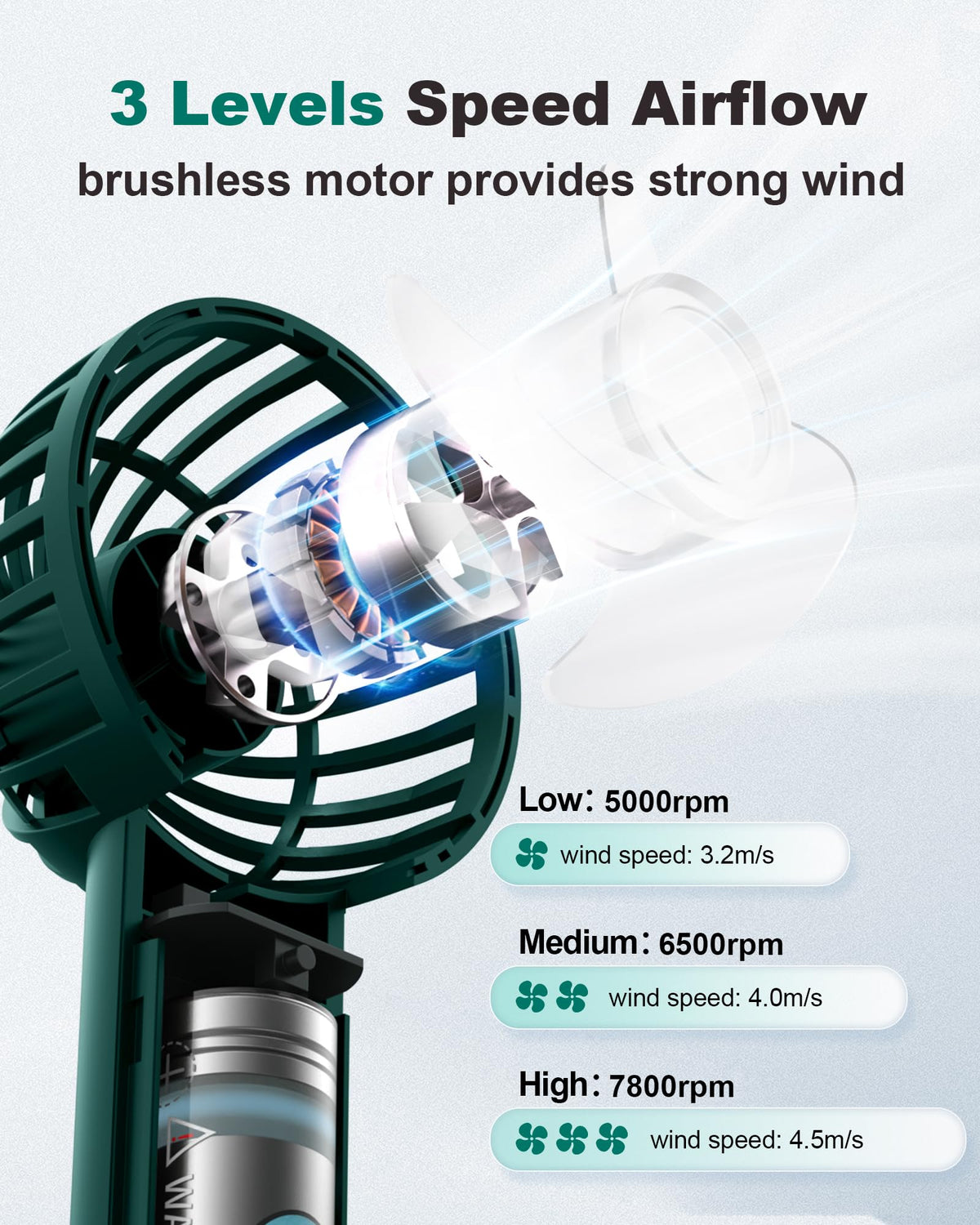 Coohea Handheld Fan Mini Portable Fan Rechargeable Battery Small Fan 3 Speeds Powerful Makeup Fan Usb Powered Fan With Base Lany