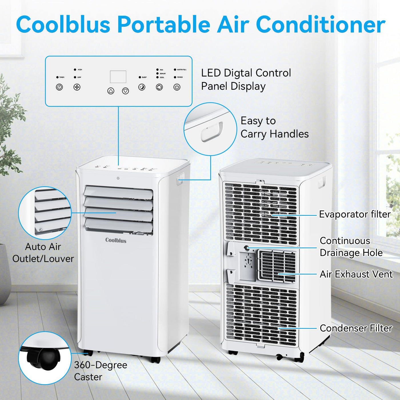 Q: Does this air conditioner have a dehumidifying function?A: Yes, the Coolblus A016B features a 3-in-1 design that includes cooling, dehumidifying, and fan functions, helping to maintain a comfortable indoor climate.