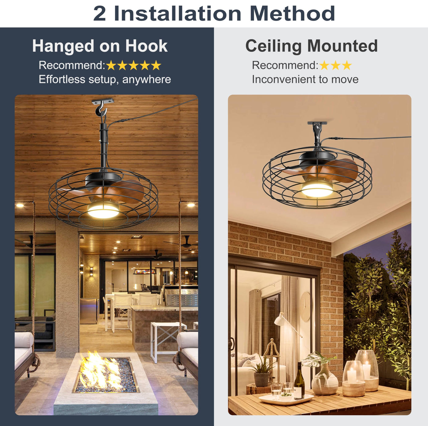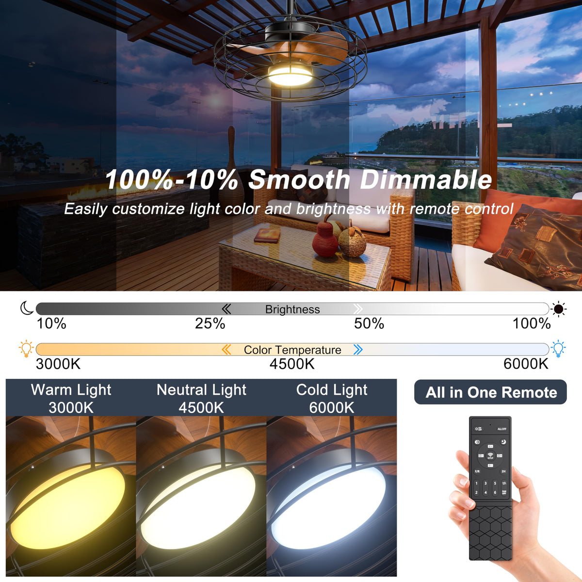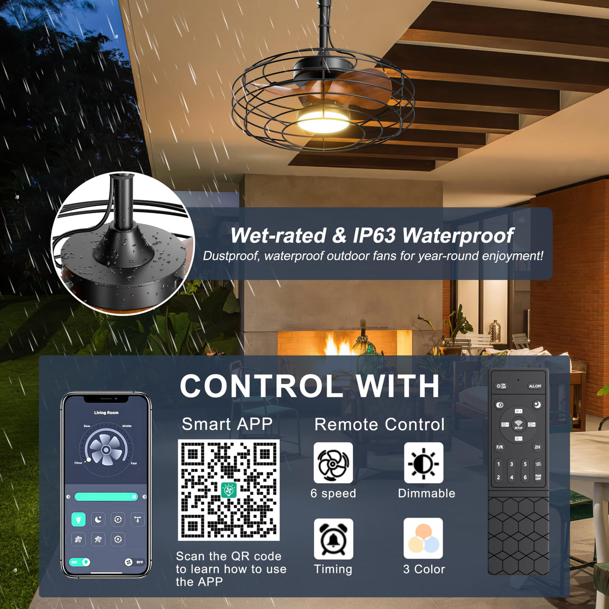 Introducing The Ohniyou Small Caged Outdoor Ceiling Fan - Your Durable Outdoor Comfort Solution! Stand Out With Its Waterproof, Wet Rated Design, Perfect For Patios, Decks, Porches, Canopies, And Gazebos. Enjoy Effortless Installation And Relocation Thanks To The Hanging Design And A Generous 16Ft Plug-In Cord, Offering Flexibility In Placing Your Corded Ceiling Fan In Various Outdoor Locations. Elevate Your Outdoor Space With Enhanced Lighting And Airflow Control - Dimmable Lights With 3 Colors And 6 Powerful Wind Speeds, All Easily Managed With A Remote And App. Practical And Quiet, This Farmhouse Compact Patio Caged Ceiling Fan With Lights Features A Quiet And Reversible Dc Motor For Hushed Operation And Year-Round Functionality. And Here'S A Friendly Reminder For Longevity: Avoid Hanging It In An Unsheltered Outdoor Place For Too Long To Prevent Exposure To Prolonged Rain. Invest In The Ohniyou Enclosed Small Outdoor Ceiling Fan For A Stylish, Practical, And Enduring Outdoor Solution!