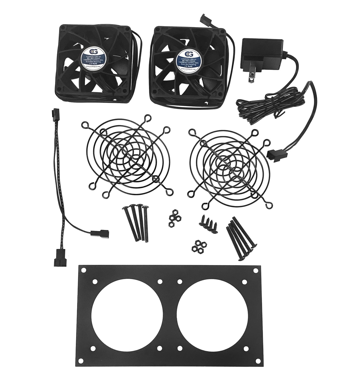 This Particular *Kit Is For A Dual Fan Unit Meant To Cool Your Cabinet, Multimedia Center, Aquarium, Home Grow Op, Brewing Project Or Whatever Else That May Need Cooling, The Only Limit Is Your Imagination! This Kit Can Move A Total Of 40 Cubic Feet (Wxhxd) Of Air Per Minute (Cfm)Can Be Mounted On Any Side Of A Cabinet, Where Room Permits (Cutout Dimensions Below). Insert Completed Cooler Assembly In Hole And Attach With Appropriate Screws. Fan Can Be Set To Be Either An Intake Or Exhaust, Simply Mount The Fan To The Bracket Pointing In The Desired Direction Before Installing (If You Are Looking At The Label The Air Will Flow Towards You)Includes: (2)**Ultra Quiet & Reliable Coolerguys Dual Ball Bearing 80Mm 3Pin 12V Fan With Dual Ball Bearings This Fan Is Rated To Last 50,000+ Hours Running 365/24/7 (Nearly 6 Years!) The Fan Has A 30'' (760Mm) Long Cord, If You Need To Extend This Length We Have Extensions Here (1) Coolerguys 500Ma 100-240V Ac To 12V Dc Power Supply With 4Pin Molex Plug This Is How The Fan Can Run From A Standard 2 Prong Wall Socket, Since It Is 100-240V Ac Powered It Can Be Used In Any Region If You Use Adapt To The Appropriate Plug.Total Kit Contents: (1) Coolerguys 500Ma 100-240V Ac To 12V Dc Power Supply With 4Pin Molex Plug (2) Coolerguys Ultra Quiet 80X80X25Mm Dual Ball Bearing Low Speed Fan (1) Bracket Of Your Choosing (Acrylic Or Metal) (1) Coolerguys 4Pin To Dual 3Pin Adapter (4) Black 80Mm Wire Fan Grill(16) Fan Nuts And Bolts(4) #6 - 1/2'' Black Cabinet Screwsproduct Specifications:Operation Voltage: 6.5~13.8 Voltsinput Current: 0.08A Operation Temperature: -10 To +65 C Storage Temperature: -40 To +70 C Fan Speed: 1500 +/- 10% Airflow: 20 Cfm Noise Level: 17 Dba Connector: 3 Pin W/ 30'' Tail Life: 50,000 Hours (Nearly 6 Continuous Years)