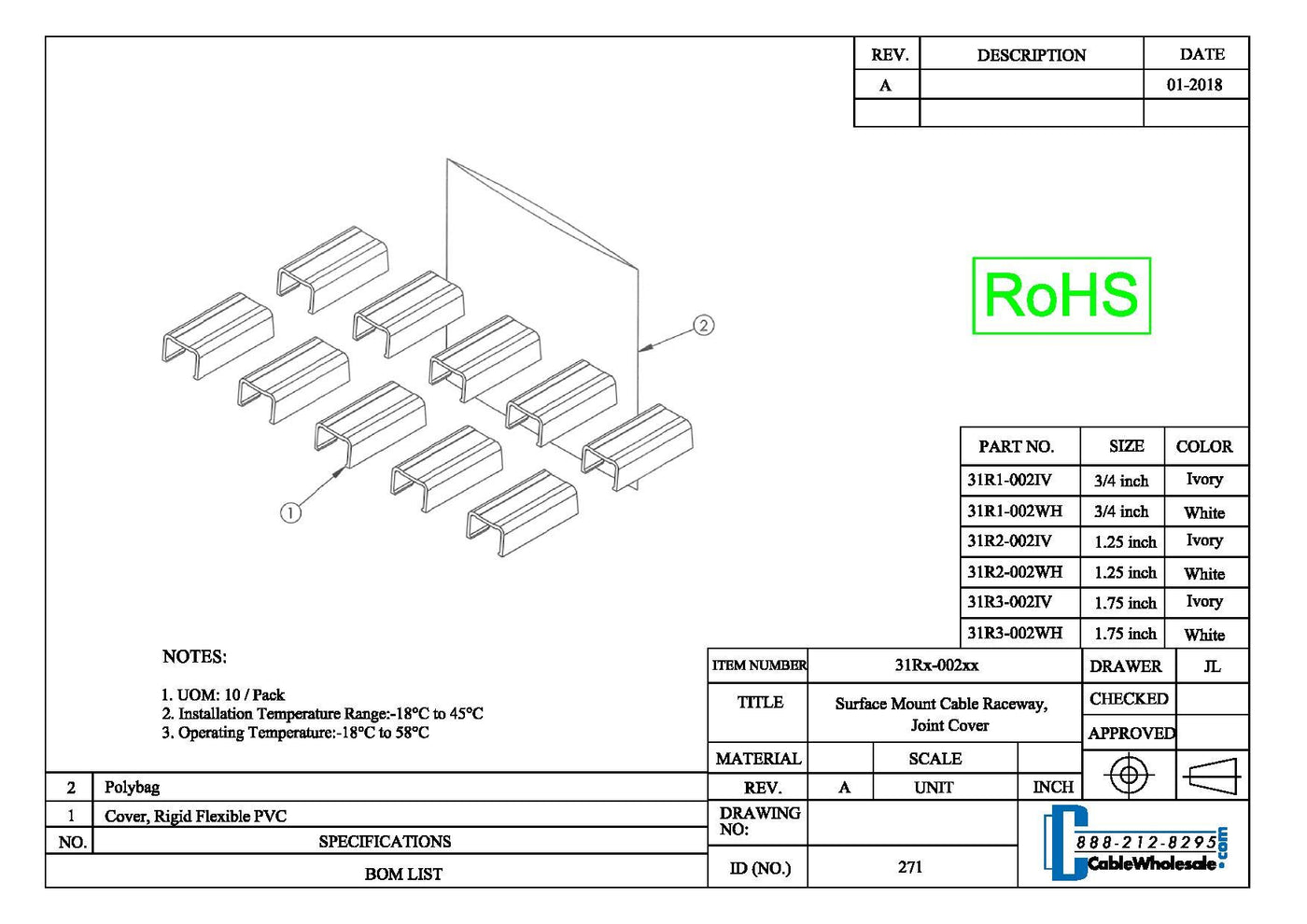 This White 1.75 Inch Raceway Piece Serves As A Junction Between Two Straight Raceway Pieces. Per The Name It Covers Joints Providing A More Attractive Seam And Maintaining Rigidity Of The Run. Use Surface Mount Cable Raceways To Protect And Tidy Up Cable Runs Around The Home Or Office Where Running Through Walls Is Not Possible Or Practical. These Raceways Are Useful For Nearly Any Type Of Cable From Phone, Network, Usb, Vga, Audio/Video, Speaker And More. Some Sample Applications Would Be: Office Cubicles Where Walls Are Not Available Or The Working Space Can Change Configuration Or In The Existing Home Where One Wants To Install Surround Speakers And Hide/Protect The Speaker Cables/Wires.