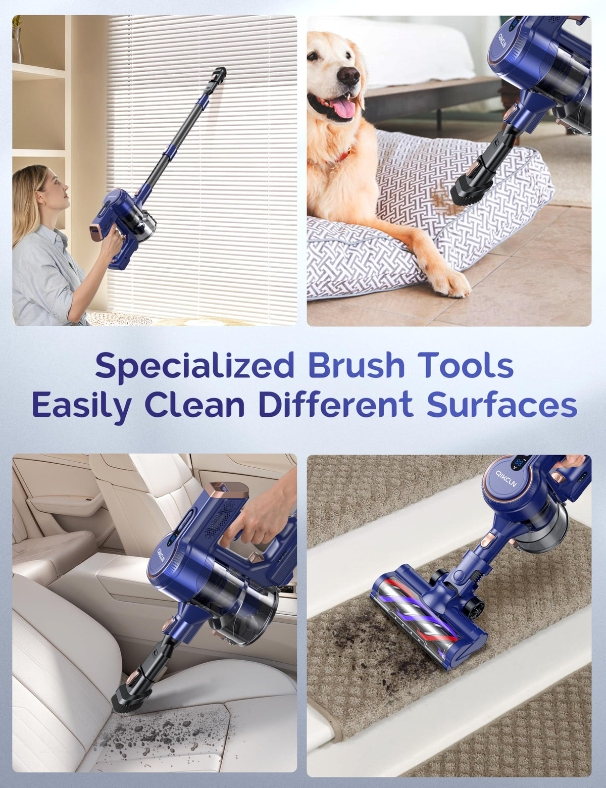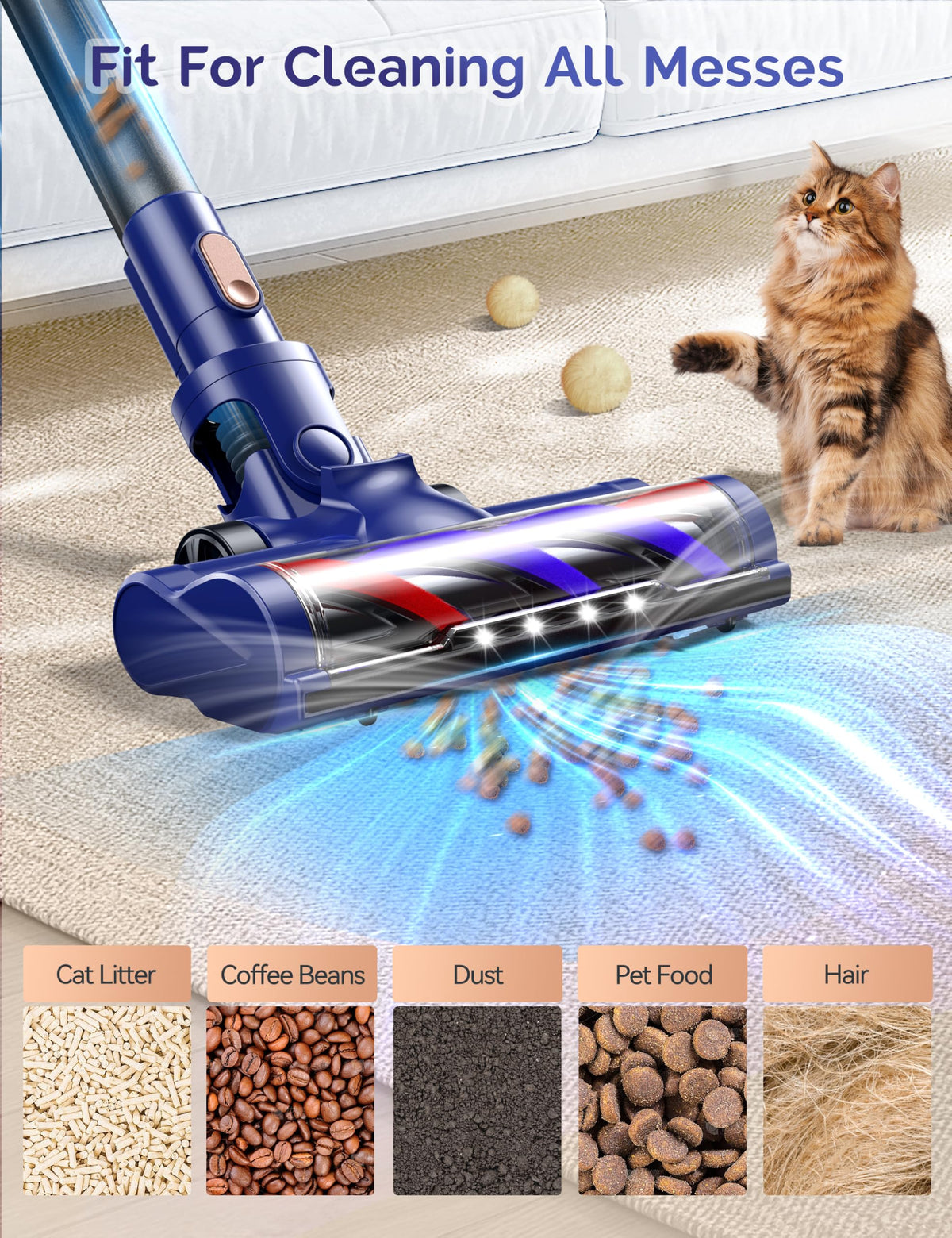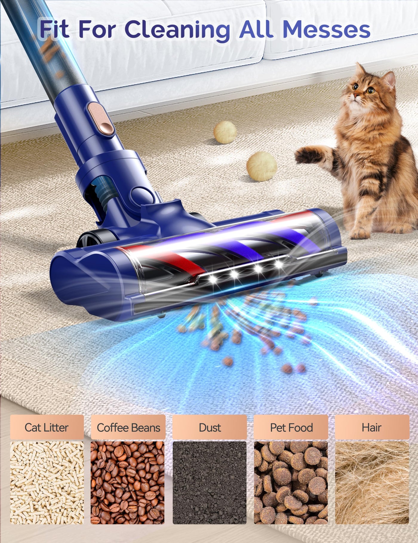 Up To 45 Min Runtime: This Stick Vacuum Uses A 2200Mah Large-Capacity Lithium Battery With A Separate Power Display And Can Be Removable For Charging. The Cordless Vacuum Can Run Up To 45 Minutes In Eco Mode, 30 Minutes In Mid Mode, And 15 Minutes In Max Mode. Clean Your Entire House With Just One Battery | Powerful 150 W Motor And Three Mode: The Lightweight Vacuum Cleaner Is Equipped With A 150W Motor, Bringing Suction Power Up To 23Kpa, A Smart Led Screen That Can Display The Remaining Battery Power, And Easily Switch Between Three Suction Modes. Easily Sucking Away Dust, Dander, Pet Hair, And Larger Debris From Hardwood Floors, Carpets, And Other Surfaces | Upgraded Floor Brush To Reduce Hair Tangles: Our Cordless Vacuum Use Advanced Floor Brushes With Led Headlights To Easily Illuminate Inaccessible Corners, Can Be Laid Flat At 180