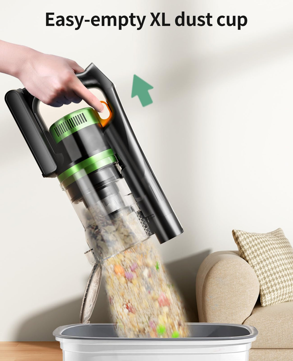 Q: Does the SunSare Vacuum come with a dust cup, and how is it emptied?A: Yes, the SunSare Vacuum Cleaner is equipped with a spacious 1.5L dust cup that features a one-pull design for easy and mess-free emptying.