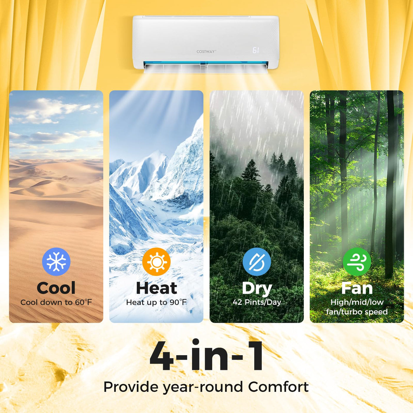 Costway 12,000 Btu Mini Split Air Conditioner, With Heat Pump, Energy Star, 21 Seer2 Inverter, 24H Timer, Auto Clean, Remote Con