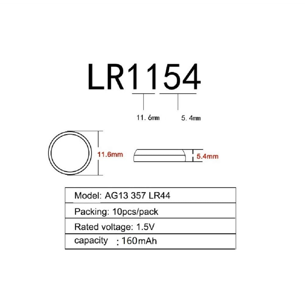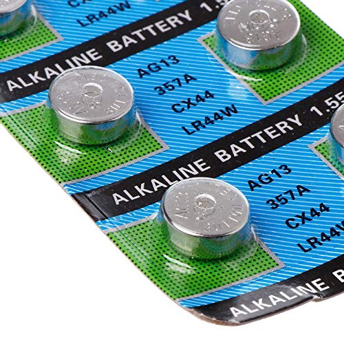 Introduction: Ag13 Alkaline Cells Are 1.5V Hearing Aid Earphone Batteries, Adopt High-Tech Appliances And Well-Selected Materials To Produce, Which Can Be Applicable To Wide-Range Temperature And Excellent Leakage Resistance. May Also Be Known As 303, 357, 357, 1128Mp, 1130So, 1166A, 280-08, 303-1, A , A76, Ag13, D303, D357, D76A, G13, G13A, Gp76, Gpa76, Gs14, L1154, Lr1154, Lr44, Ms76, Px675A, Px76A, Rpx675, S06, S1154, S76, S76E, Sb-A9, Sg13, Sp303, Sr1154, Sr44, Sr44Sw, Sr44W, Sr47, V13Ga, V303, V303, V357, V76Hs, Ws16. Features: Safe And Reliable. Provide Excellent Continuous Power. Superb Characteristics Over A Wide Temperature Range. High Energy Density, Long Life Expantancy. Small Size, Easy And Convenient To Use At Every Driver. Ideal For Laser Pointers, Led Light Sticks, Cameras, Toys, Games, Talking Books, Calculators, Clocks, Watches, Hit Clip Players, Lighters, Exercise Machines Etc. Batteries Only, Other Accessories Demo In The Picture Are Not Included! Tips: 1. Wipe The Battery With Dry Cloth Ansd Set Properly Confirming End(+.-). 2. Keep The Battery In A Dark, Cool And Dry Place. 3. Use Finger Sacks Or Non-Metallic Tweezers. 4. Do Not Throw The Battery In Ti Fire, Not Recharge. 5. Insert The Battery In The Right Direction And Avoid Short-Circuit. 6. Keep Away From Children. Specification: Model: Ag13 Material: Metal Rated Capacity: 160 Standard Voltage: 1.55V Short Circuit Current: 0.3A Standard Load Current: 0.3A Storage & Working Temperature: