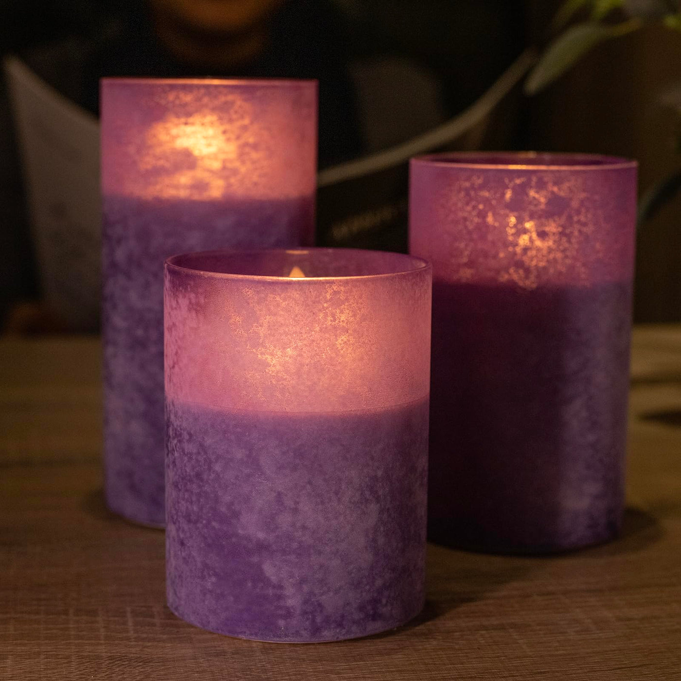 Q: What sizes do the candles come in, and how can I use them for decoration?A: This set includes three candles with heights of 4 inches, 5 inches, and 6 inches, all with a 3-inch diameter. They are perfect for various decorative settings, such as weddings, home décor, or special events, providing beautiful illumination without the hassle of traditional candles.