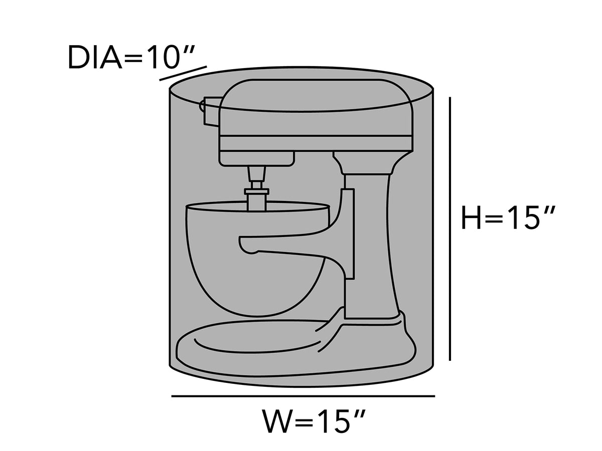 Q: What are the dimensions of the Covermates Keepsakes Mixer Cover?A: The Covermates Keepsakes Mixer Cover has dimensions of 15 inches in width, 10 inches in depth, and 15 inches in height (15W x 10D x 15H), making it a perfect fit for standard-sized mixers.