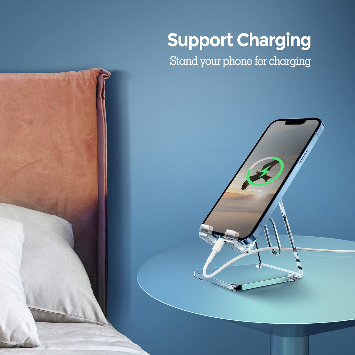 Q: Can I use the phone stand while charging my device?A: Yes, the CreaDream Acrylic Cell Phone Stand is designed for hands-free use, allowing you to easily play games, video chat, or watch videos while your phone is charging.