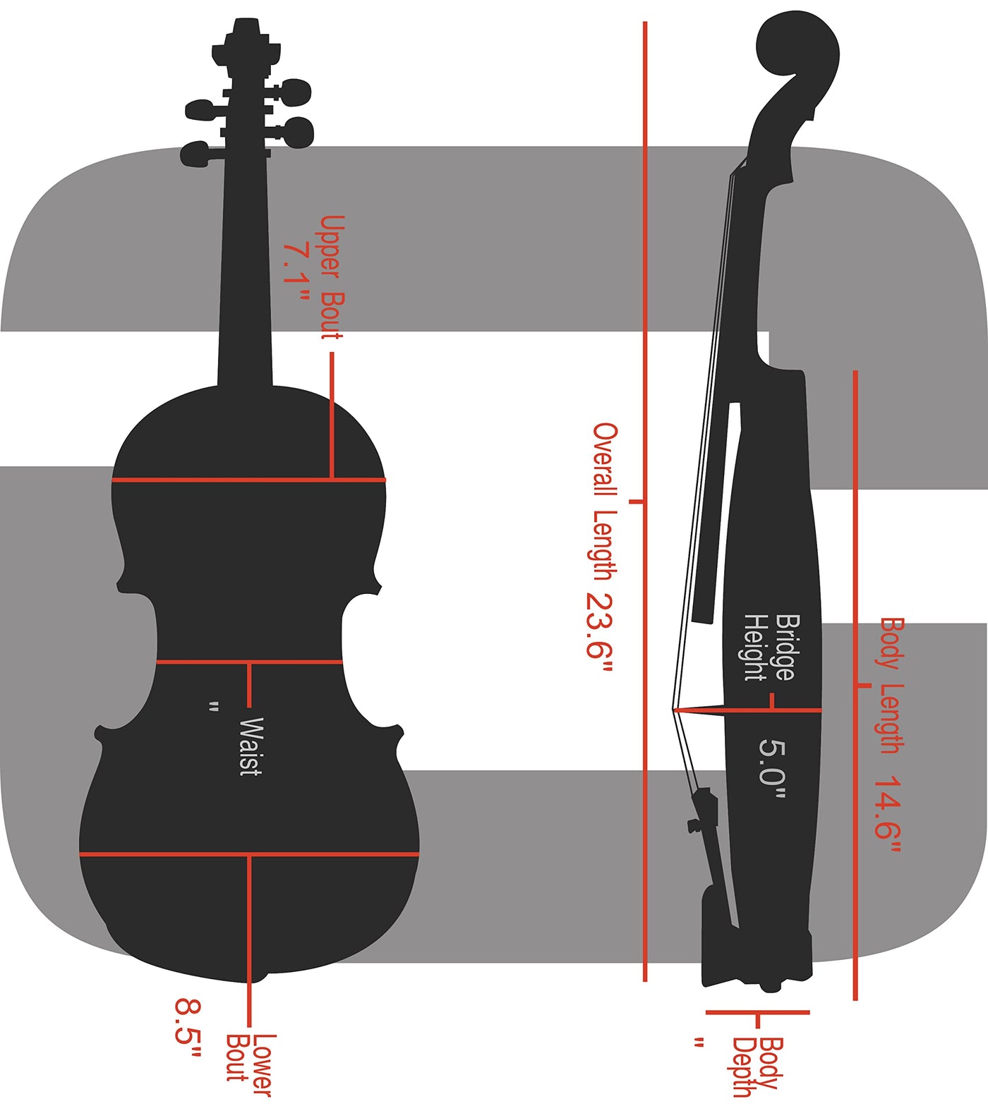 Exterior Size: 805Mm X 280Mm X 150Mm (31.7'''' X 11'''' X 5.9''''); Inside Size: 1. Accessory Compartment: 200Mm X 100Mm X 50Mm (7.9'''' X 3.9'''' X 2''''); 2. Overall Length For Instrument: 600Mm (23.6''''); Body Length: 370Mm (14.6''''); Upper Bout: 180Mm (7.1''''); Lower Bout: 215Mm (8.5''''); Available For 4/4 Full Size Violin