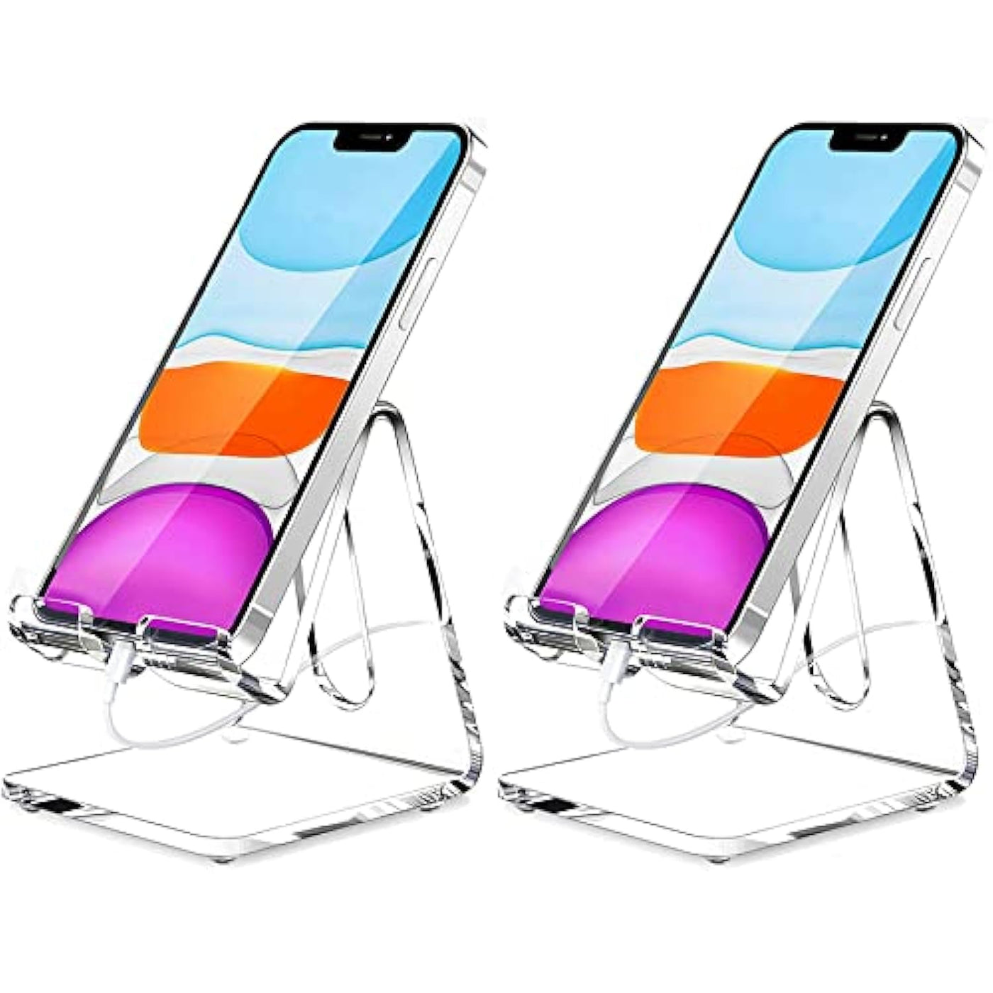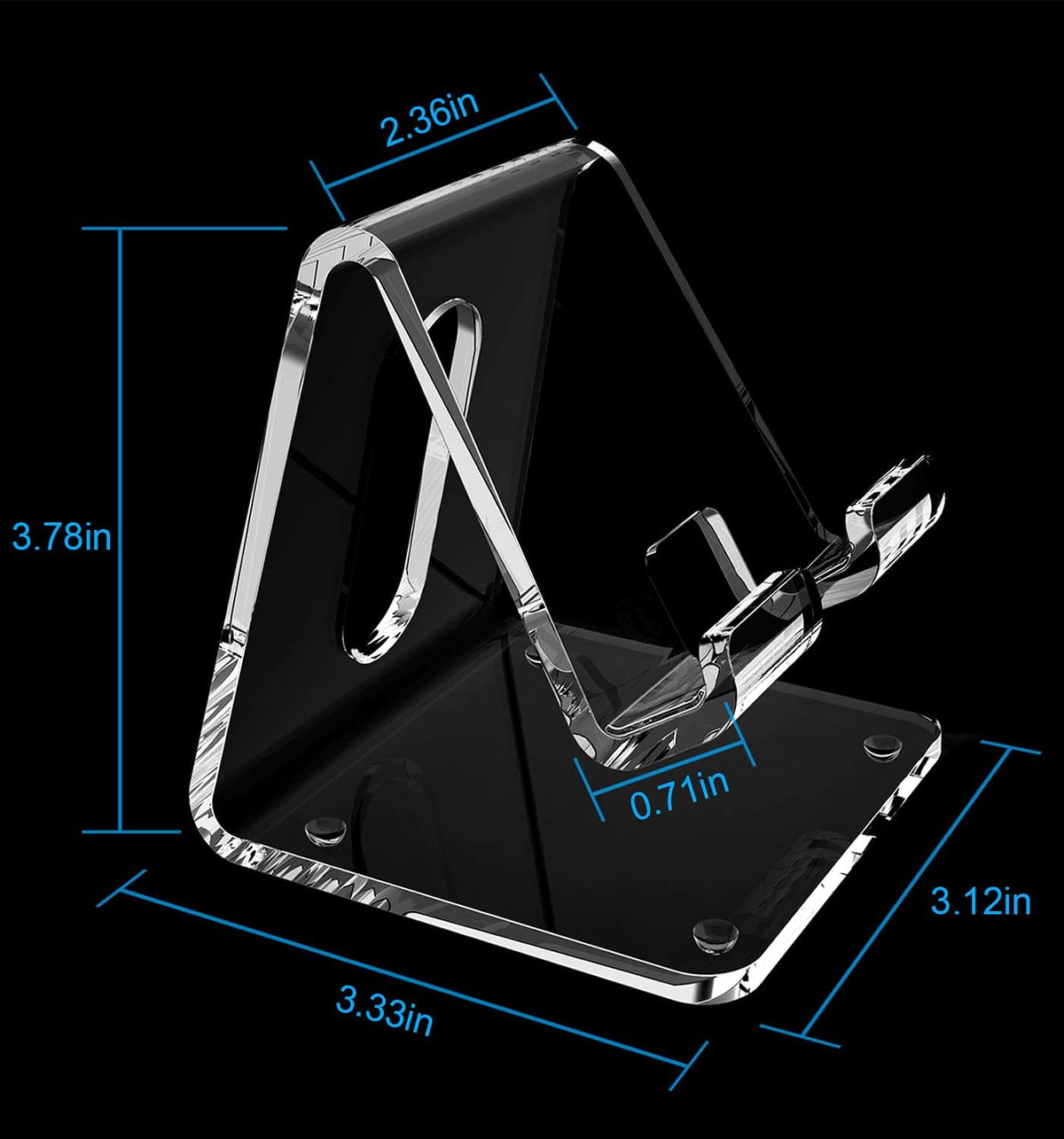 Widely Compatible: This Cell Phone Stand Is Compatible With All 4-10 Inches Smart Phones In Phone Cases, Tablets And E-Readers, Such As For Phone15 14 13 12 Pro Max Mini 11 Pro Xs Max Xr X 8 7 Se Plus, Switch, Ipad Mini, Samsung Galaxy S20/S20+/Note 20/S10/S10 + Note10/S9/S9+/S8/S8+, Google Pixel, Nexus, Samsung Tab, Kindle, Sony, Moto, Lg Etc. Multipurpose Use: Hands-Free, Make It Possible To Play Games, Use Facetime And Youtube While Charging. Play A Good Role In Your Office, Kitchen, Nightstand, Dining Table. High Transparent Clear Appearance Creates An Elegant & Modern Office Space For You. It Is An Ideal Gift For Students, Colleagues, And Other People You Loved! Durable & Anti-Slip: This Clear Phone Holder Is Made Of 4Mm High-Quality Acrylic Panel, Without Any Sharp Burrs From Manufacturing Process. Sleek Edges Make This Iphone Holder Feel Great To Touch, Rubber Pads Protect Your Cell Phone And The Desk Surface From Scratching. Ergonomic Viewing Angle: This Cell Phone Stand Holder Is In Accordance With Ergonomic Design. Youll Enjoy A More Ergonomic, Eye-Level Viewpoint And Typing Position, As Well As A Better Supporting For Your Back And Neck With A Comfortable Posture. Make The Muscle Stiffness A Thing Of The Past! Well-Thought-Out Design: With A Reserved Charging Hole, The Acrylic Phone Cradle Is Convenient For You To Charge Your Devices While Using This Item For Phone. Meanwhile, Two Protective Hooks Provide Sufficient Grip And Ensure Your Devices Do Not Slide Off.
