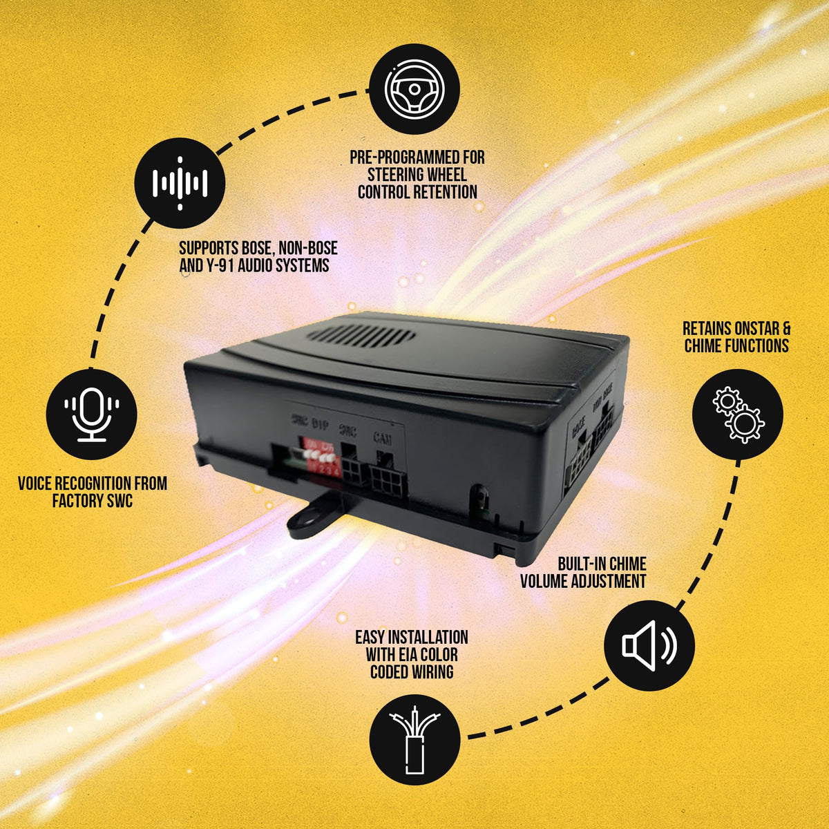 Crux Onstar Radio Replacement Interface W/ Swc Retention Video Switcher & D. Din Dash Kit Gm Clas