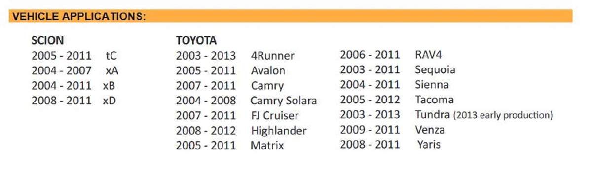 The Crux Swrty-61S Is A Radio Replacement Interface For Select Toyota Vehicles It Facilitates The Integration Of An After-Market Radio To Enable Retention Of Certain Factory Features When Replacing A Factory-Installed Radio And Is Also Pre-Programmed For Retention Of Steering Wheel Controlscompatible With:Toyota: 2003 2013 4Runner, 2005 2011 Avalon, 2007 2011 Camry, 2004 2008 Camry Solara, 2007 2010 Fj Cruiser, 2008 2012 Highlander, 2005 2011 Matrix, 2006 2011 Rav4, 2003 2011 Sequoia, 2004 2014 Sienna, 2004 2008 Solara, 2005 2012 Tacoma, 2003 2013 Tundra (2013 Early Production), 2009 2011 Venza, 2008 2011 Yarisscion: 2005 2011 Tc, 2004 2007 Xa, 2004 2011 Xb, 2008 2011 Xd