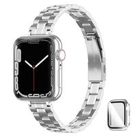 Q: What can I expect to receive with my purchase of this watch band?A: With your purchase, you will receive one metal Apple Watch wristband, one watch case, and one link-remove tool for adjusting the size of the band.