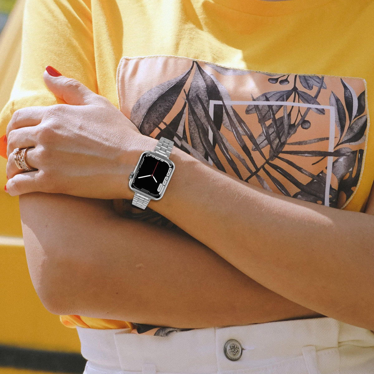 We Are A Company Specializing In The Design And Sales Of Stainless Steel Watch Band. We Use High-Quality Solid Metal Stainless Steel. It Is Strong, Durable, Waterproof, And Most Importantly, It Is More Skin-Friendly. This Silm And Thin Band Is Specially Designed For Women, Unique Design With Polished And Brushed, It Can Meet The Matching Of Female Or Ladies And Girl'S Daily Wear. It Compatible With Apple Watch Band 38Mm 40Mm 41Mm 42Mm 44Mm 45Mm For Women, Fits 5.8-8.3 Inch(150-210 Mm) Wrist. You Can Easily Adjust The Length Of The Apple Watch Band To Fit Your Wrist With The Attached Link-Remove Tool.