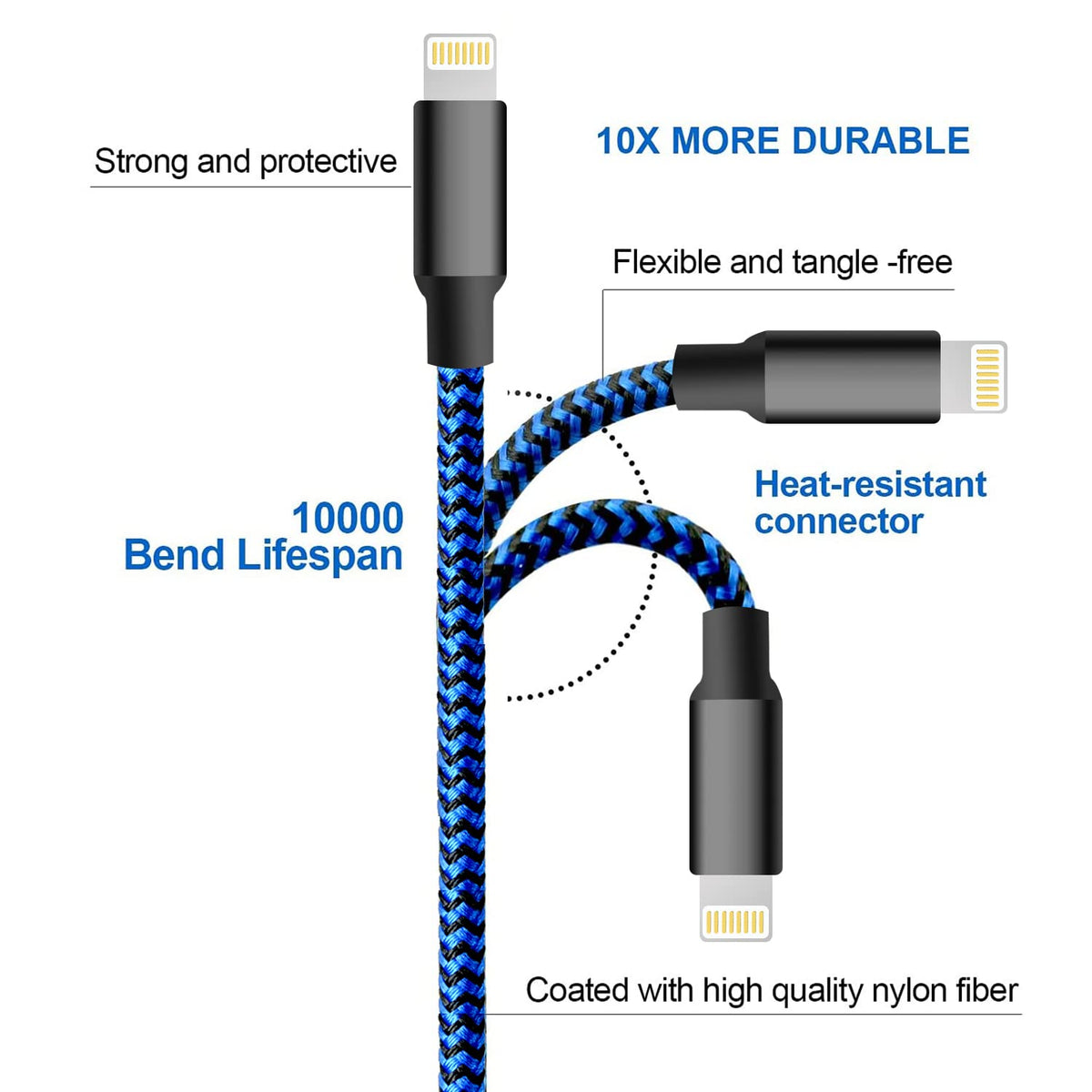 Q: How durable is the cugunu iPhone charging cable?A: The cugunu iPhone charging cable is designed for durability, featuring a tangle-free nylon braided fiber material and reinforced stress points that withstand over 10,000 bend cycles without failure.
