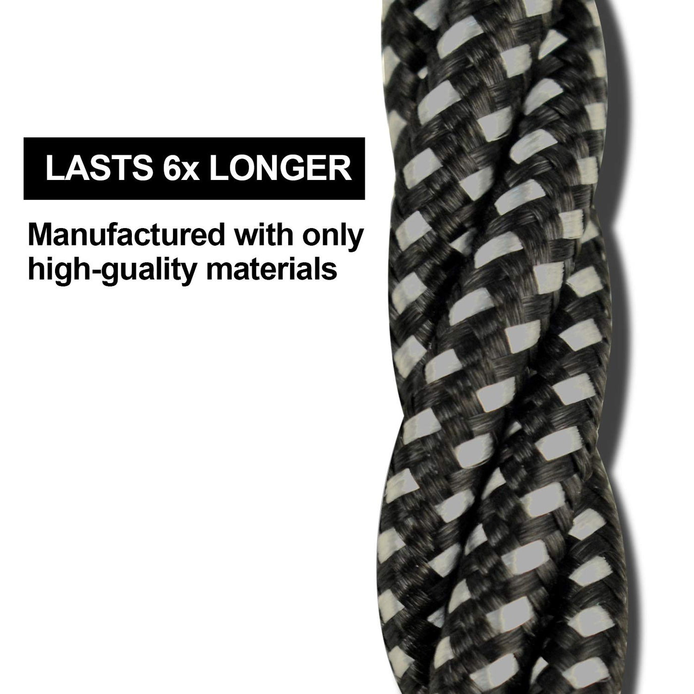 Q: How does the nylon braided design improve durability?A: The nylon braided design of the cugunu iPhone Charger provides enhanced durability and flexibility compared to standard cables. It is engineered to withstand over 10,000 bend cycles, making it resistant to wear and tear, splitting, and breakage.