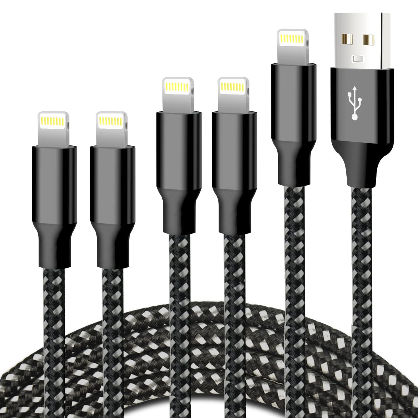 Cugunu Iphone Charger, 5 Pack 3/3/6/6/10Ft Apple Mfi Certified Usb Lightning Cable Nylon Braided Fast Charging Cord Compatible For Iphone 14/13/12/11/X/Max/8/7/6/5/Se/Plus/Ipad Black Gray