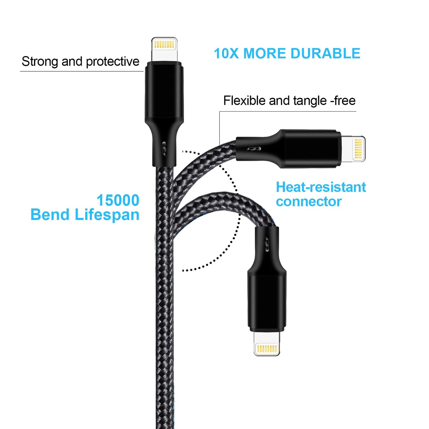 Q: How many cables are included in the package, and what lengths do they come in?A: Each package contains five cables in varying lengths: two 3-foot cables, two 6-foot cables, and one 10-foot cable, allowing for versatile charging options depending on your needs.
