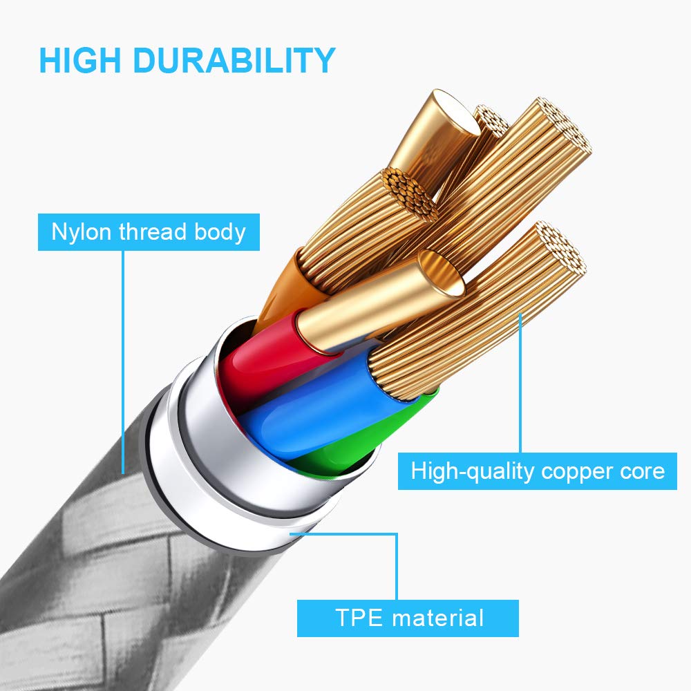Q: Is this cable durable and long-lasting?A: Yes, the cugunu cable is designed for durability with its high-quality materials, including a tangle-free nylon braided jacket and reinforced stress points. It has been tested to withstand over 15,000 bend cycles, ensuring a longer service life.