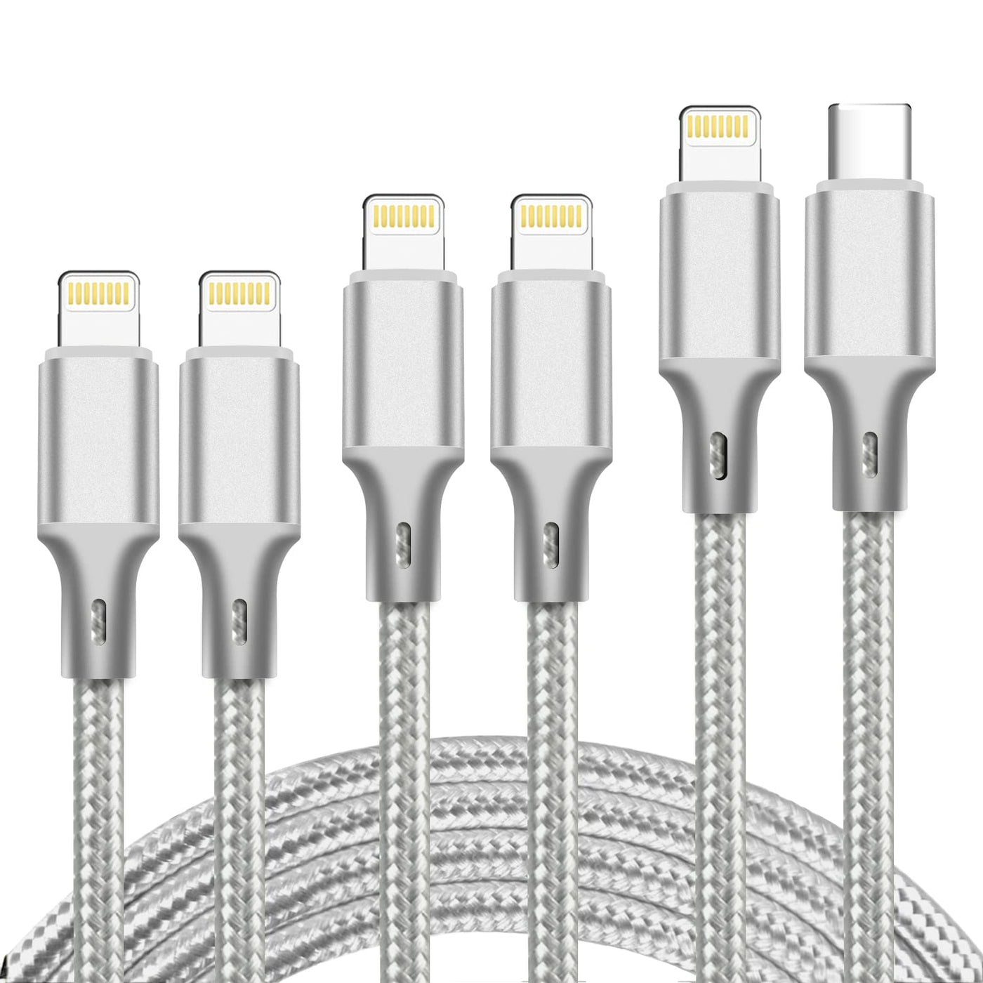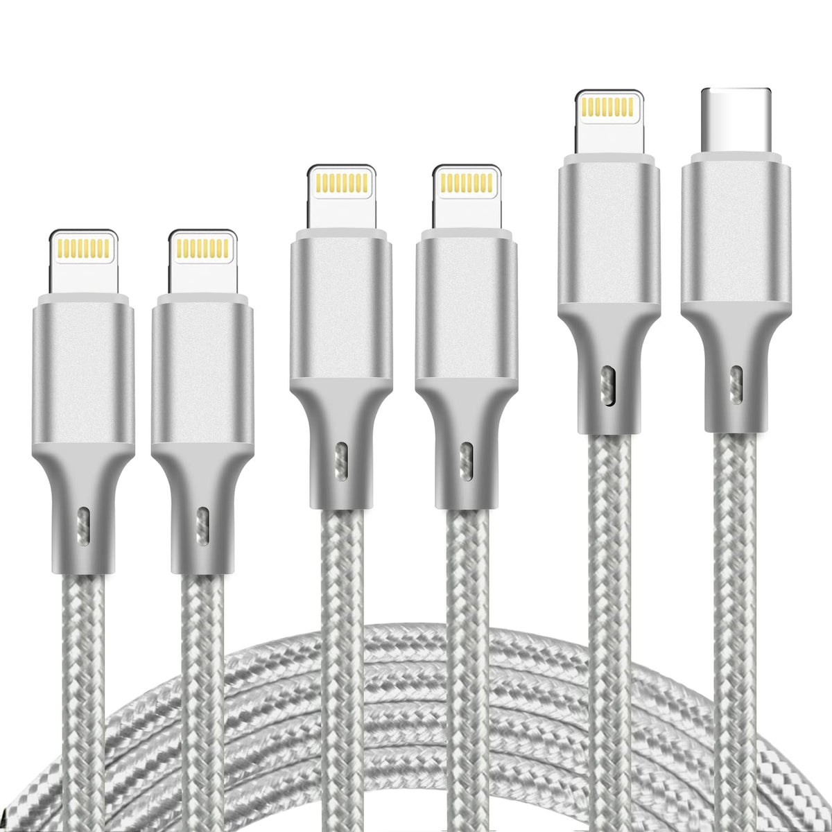 Cugunu Usb C To Lightning Cable 5 Pack 3/3/6/6/10Ft Iphone Charger Apple Mfi Certified Power Delivery Fast Charging Cord Compatible With Iphone 14/13/12/11/Xs/Xr/X/8 Gray
