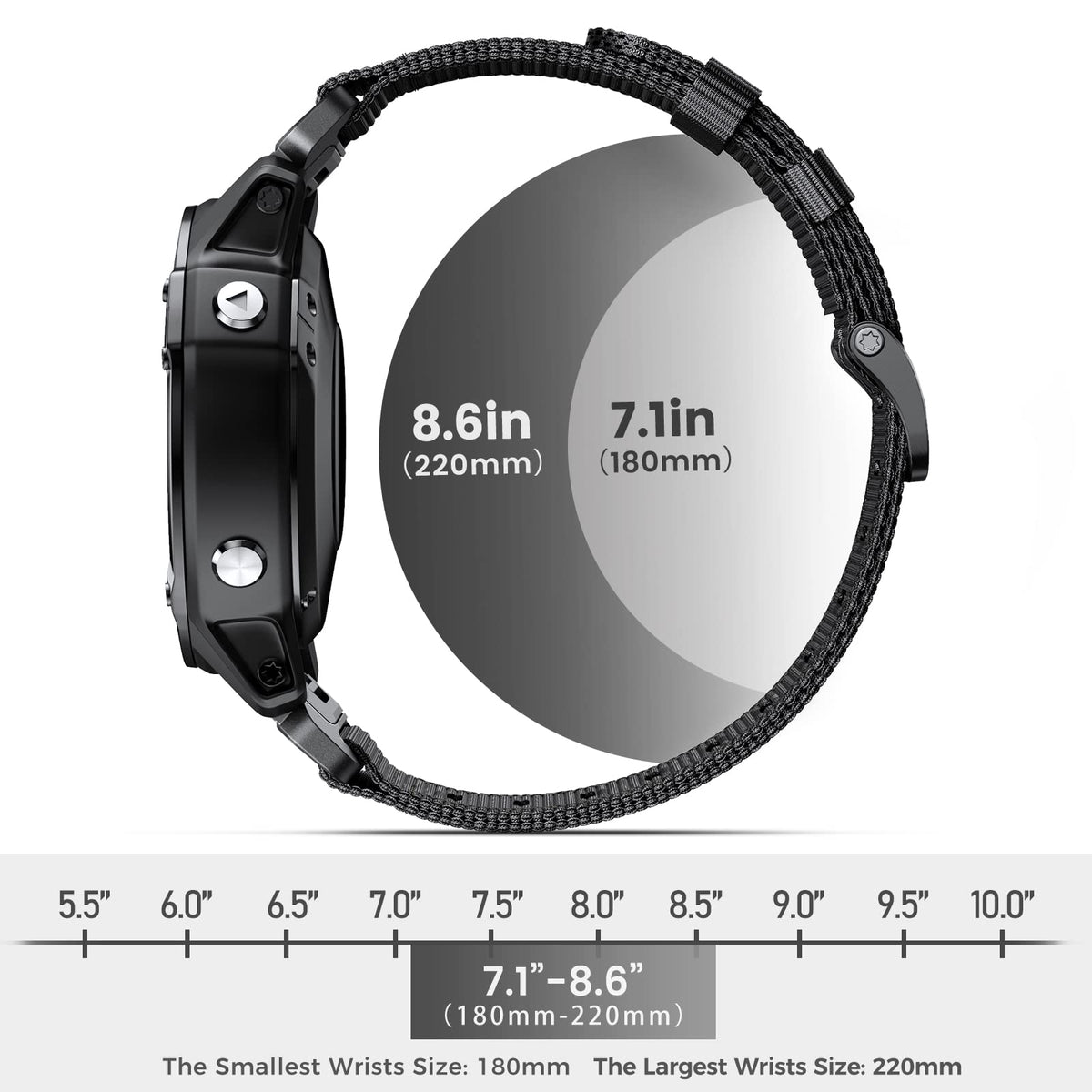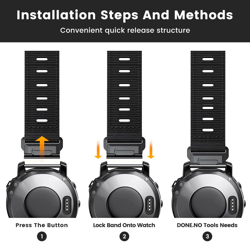 Fenix 6 Watch Band Compatible With Garmin Fenix 6/Fenix 7/Fenix 5/Fenix 6 Pro/Epix Gen 2/Instinct/Forerunner 965/945/745/955/935/Descent G1/Marq Adventurer/Quatix 7(Not For Fenix 6S / 5S / Fenix 6X / 6X Pro/ Fenix 5X / 5X Pro!) ?Premium Materials?Nylon Band 22Mm Is Made Of High Quality Nylon With Stainless Steel Buckle, Breathable, Durable And Lightweight. It Is Ultra-Light, Soft, Very Rugged. And It Has Precise Fitting Connectors, Quick Disassembly Structure And Screw Rod Locking Method. It Can Accurately And Safely Lock Watch Band ?Easy Install And Removal?Watch Band For Garmin Fenix 5 Comes With Watch Lugs On Both Ends, Which Locks Onto Watch Precisely And Securely. Direct Installation And One Button Removal Without Tool. ?Adjustable Wrist Strap?Epix Pro Gen 2 Soft Woven Sport Watch Band Suitable For Wrists Between 7.1''-8.6''(180Mm-220Mm). When Exercising, You Can Perfectly Hold The Watch Against Your Wrist For Better Exercise Readings. ?Great Customer Services?22Mm Quickfit Nylon Has One-Year Warranty. If You Have Any Questions About The Item, Please Contact Us. We Will Find The Best Solution For You Within 24 Hours.