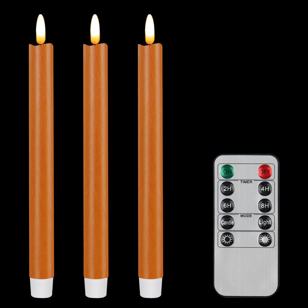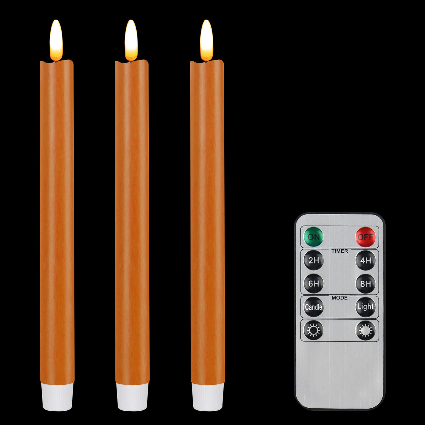 Q: How do I operate the remote control for the candles?A: The included 10-key remote control allows you to easily operate the flameless taper candles. You can turn them on/off, set a timer for 2, 4, 6, or 8 hours, adjust the brightness, and change the flicker pattern to create your desired ambiance.