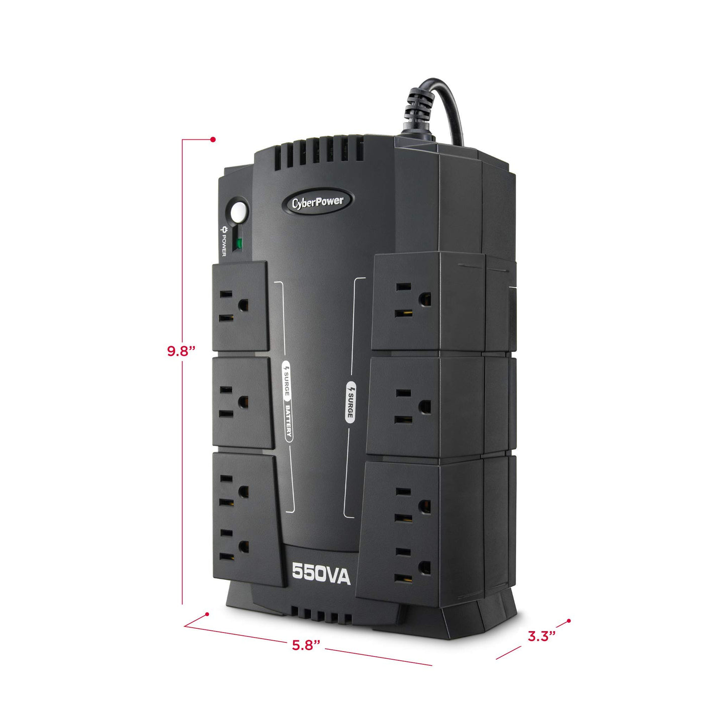 The Cyberpower Standby Cp550Slg Ups Safeguards A Home Office Pc And Other Electronics (Monitors, Scanners, Speakers, Cd/Dvd/Mp3 Players And More) From Surges, Sags, Brownouts And Other Power Disruptions. The Cp550Slg Provides Surge Protected, Battery Backup And Features 550Va/330 Watt Capacity, Greenpower Ups Technology, 8-Nema 5-15P Receptacles, (4 Wide-Spaced), Compact Design, 1- Usb Port, Phone/Fax (Rj11) Line Protection, Emi/Rfi Filters, Powerpanel Ups Management Software , Greenpower Ups - Advanced Energy-Saving Circuitry That Reduces Ups Energy Costs By 75 Percent, Usb Connectivity - Hid Compliant Usb Port Enables Full Integration With Built-In Power Management And Auto Shutdown Features Of Windows, Linux And Mac Os X, Emi/Rfi Filters - Shielding Against Electromagnetic Interference And Radio Frequency Signals Prevents Line Noise (Humming) Over Telephone Lines Or Audio Systems, Transformer-Spaced Outlets And#8211, Widely-Spaced Outlets Accommodate Large Transformer-Based Plugs, Mounting And 8211, Mounting Options: Horizontal, Vertical, Cabinet, And Wall , Led Indicators/Audible Alarms - Led Status Lights Indicate Power-On And Wiring Faults / Distinctive Tones Identify When The Unit Is Running On Battery Power, Is Overloaded Or When The Battery Is Low.