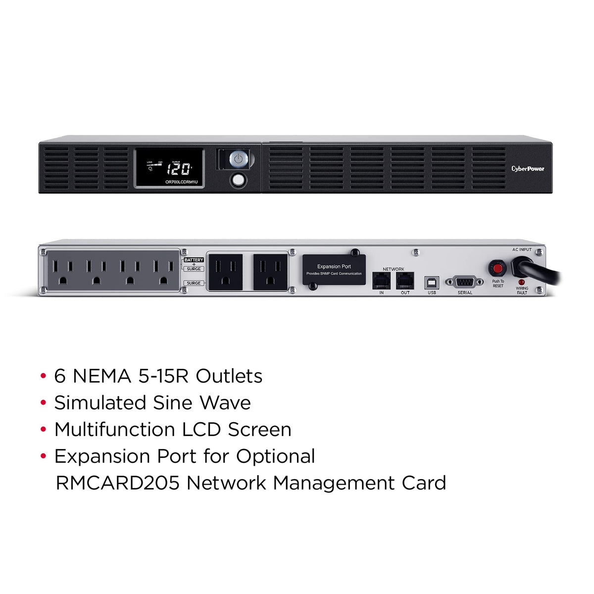 A Rackmount Ups With Line Interactive Topology, The Cyberpower Smart App Lcd Or700Lcdrm1U Provides Battery Backup (Using Simulated Sine Wave Output) And Surge Protection For Department Servers, Workgroup Servers, Workstations, Network Devices, And Telecom Installations Without Active Pfc Power Supplies. The Or700Lcdrm1U Uses Automatic Voltage Regulation (Avr) To Correct Minor Power Fluctuations Without Switching To Battery Power, Which Extends Battery Life. Avr Is Essential In Areas Where Power Fluctuations Occur Frequently. The Or700Lcdrm1U Comes With A Three-Year Warranty And A $300,000 Connected Equipment Guarantee.