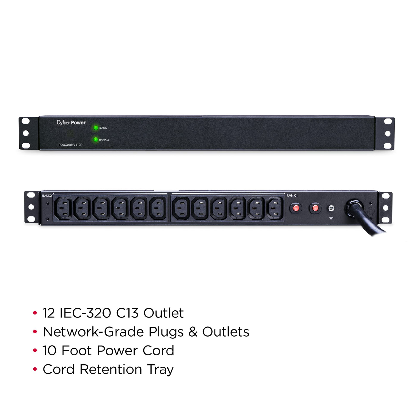 Cyberpower Pdu30Bhvt12R Basic Pdu, 200 230V/30A (Derated To 24A), 12 Outlets, 10Ft Power Cord, 1U Rackmount