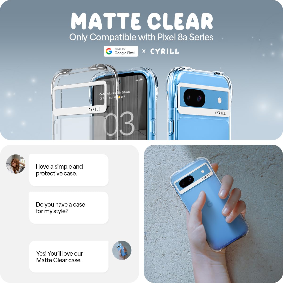 Cyrill Cecile Compatible With Google Pixel 8A Case Clear, Matte Frosted [Anti Fingerprint] Shock Absorbent Bumpers Protective Ph
