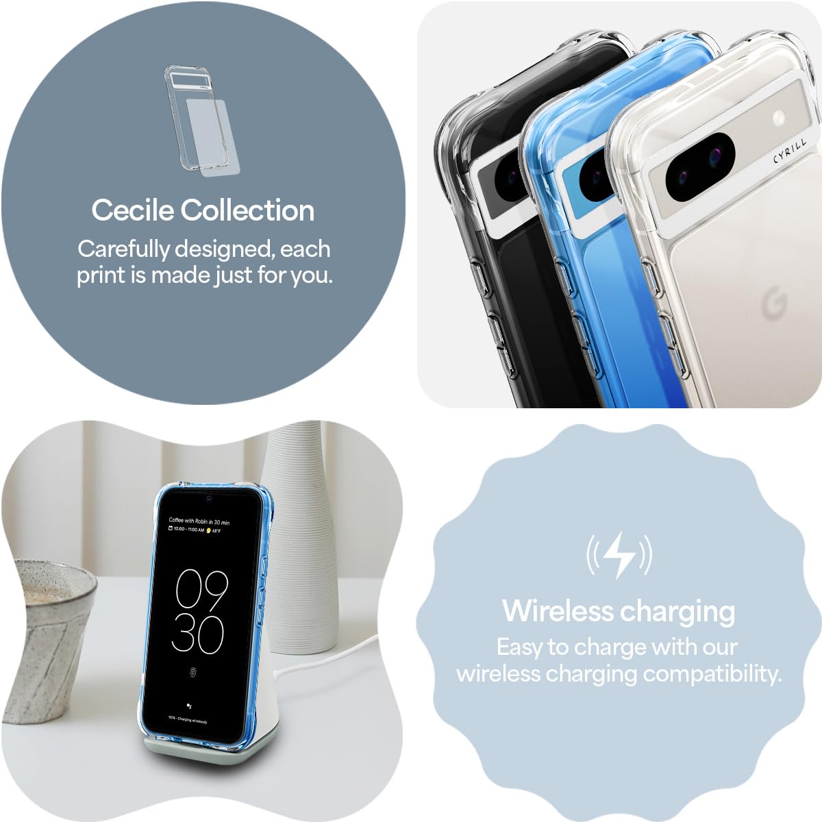 Cyrill Cecile Case For Pixel 8A 5G (2024) Is A Clear Case With A Matte Frosted Back. The Dual Layered Tpu +Pc Form Factor Design Provides The Case Protection And The Camera Ring Is Made Of A Hard, Sturdy Pc Material That Provides Full Protection Of The Camera Lens Against Drops And Scratches. The Case Also Has A Strap Hole That Allows For Phone Charms, Phone Straps, And Other Mobile Accessories To Be Attached To Your Case. Spigen Technology Such As Air Cushion Technology And Military Grade Drop Testing Is Provided For Cyrill Case For Women. The Case Has A Slim And Light Profile And Has Precise Cutouts For Easy Access To Ports And Buttons. It Is Also Wireless Charging Compatible.